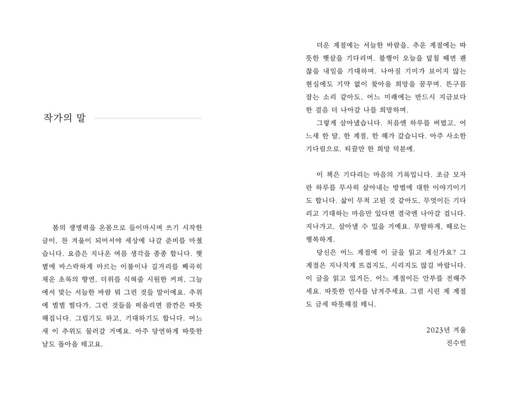 언젠가의 평화로운 계절을 기다리며, 현재를 살아내는 당신에게 이 글을 바칩니다.