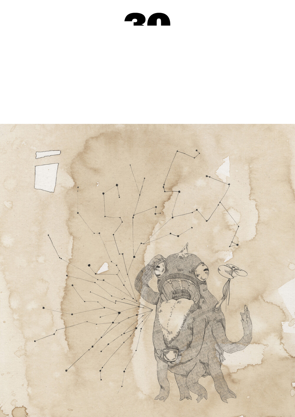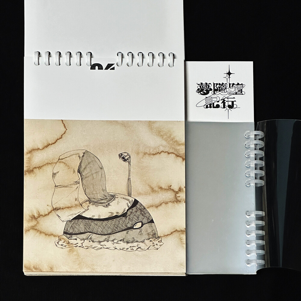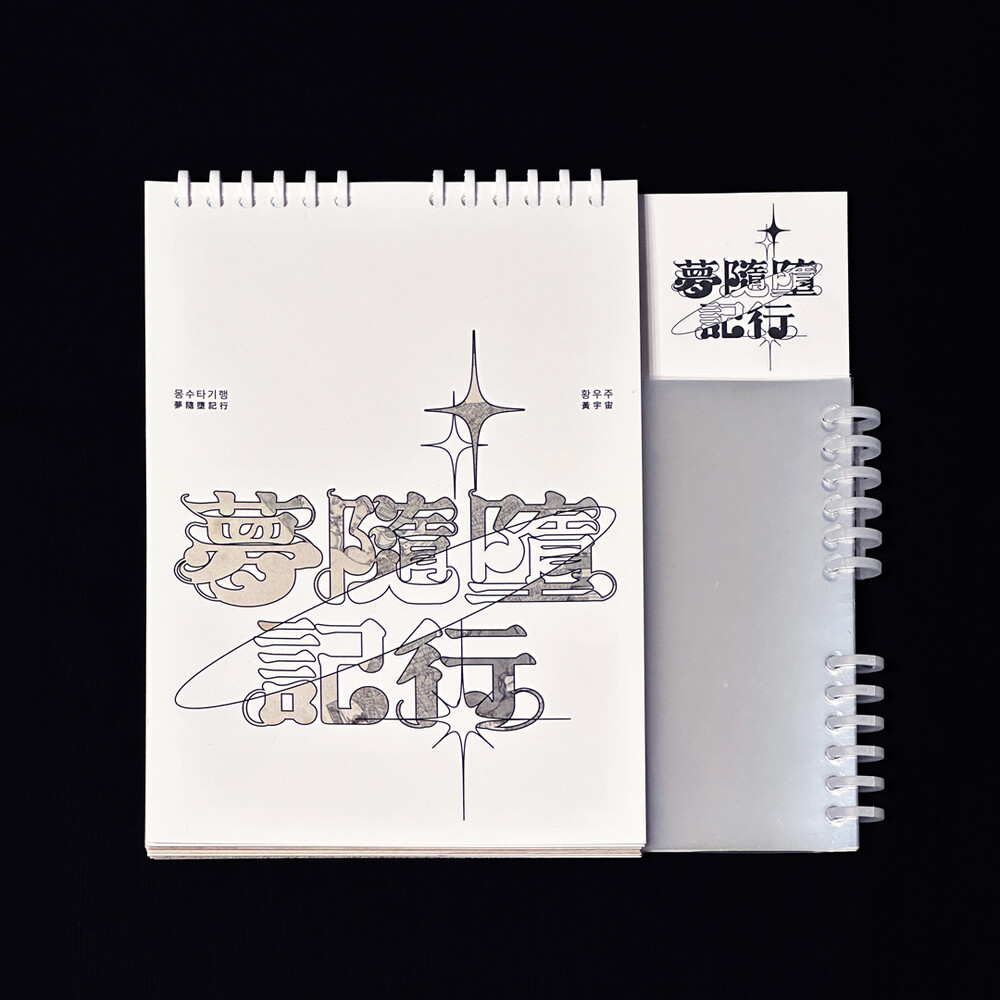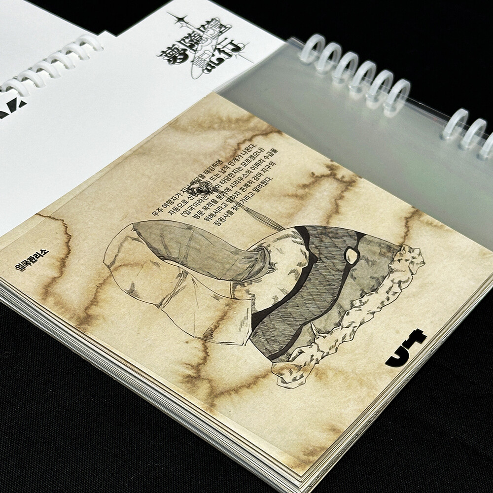 몽수타는 꿈을 좇아 떨어진 존재들이며 몽수타기행은 우주에서 그들을 만난 탐험가의 기록일지입니다. 몽수타라는 존재(그림)에 대한 관찰자의 유리된 시선을 OHP 필름에 인쇄해 겹쳐 올린 텍스트로 표현했습니다.