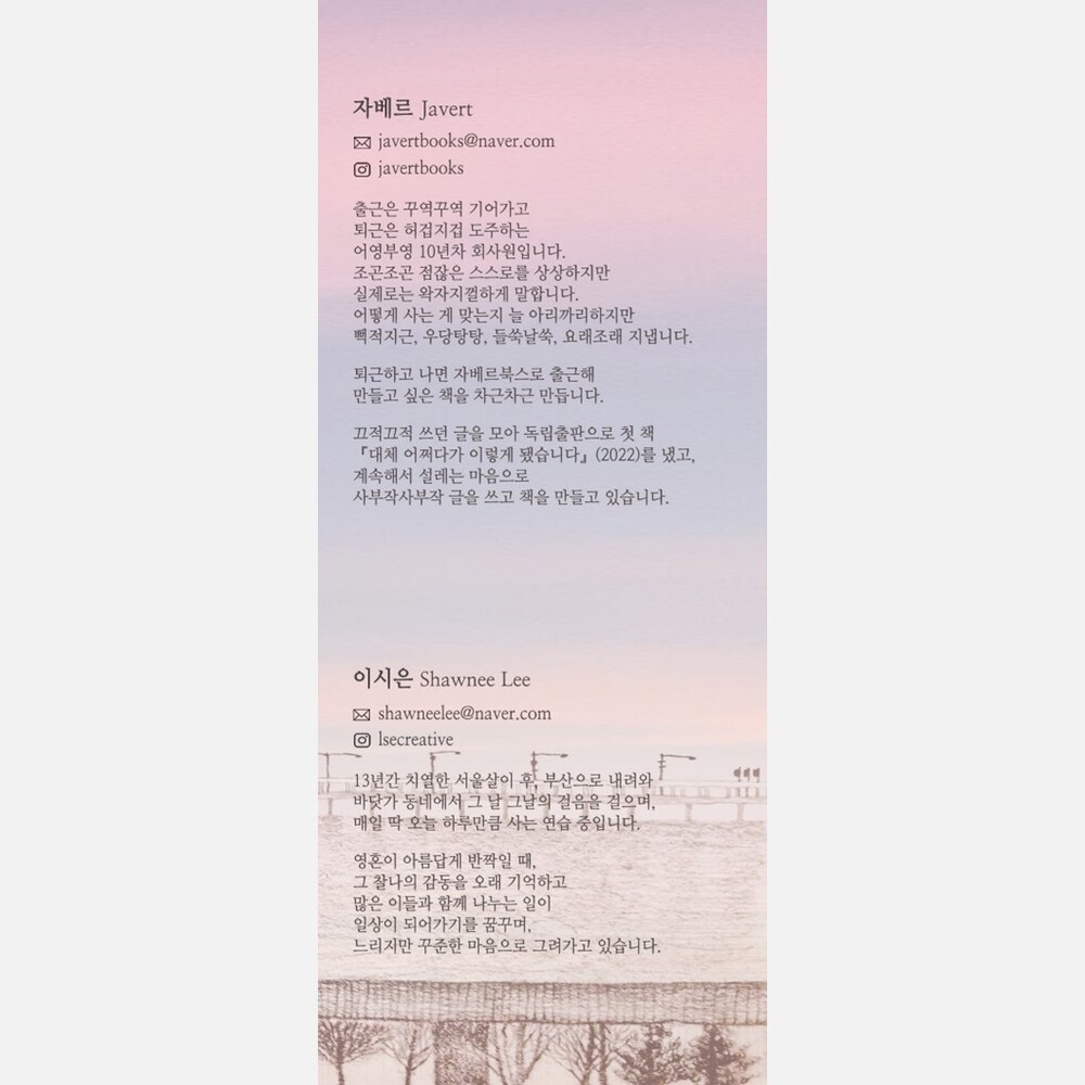 계속해서 설레는 마음으로 사부작사부작 글을 쓰고 책을 만들고 있습니다.