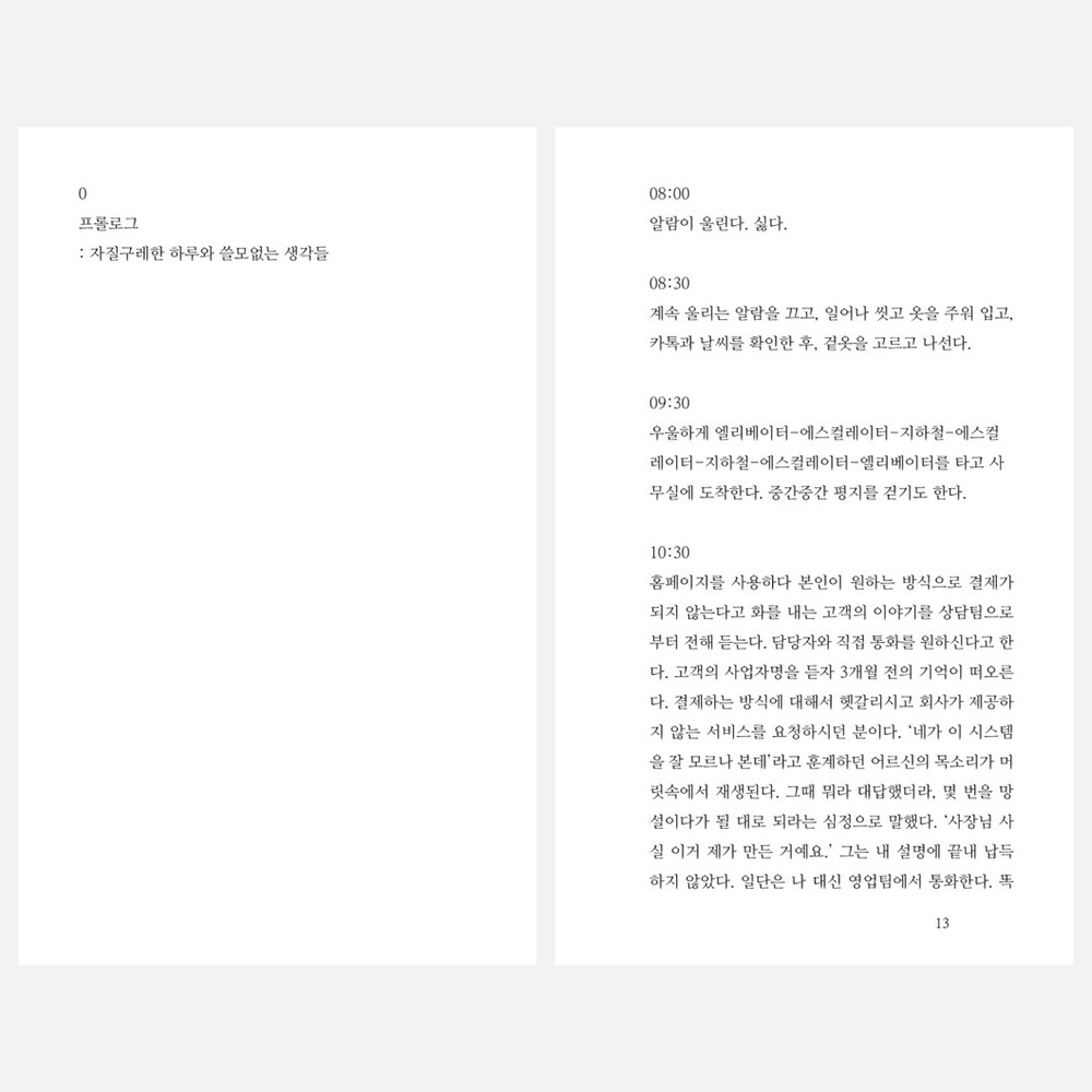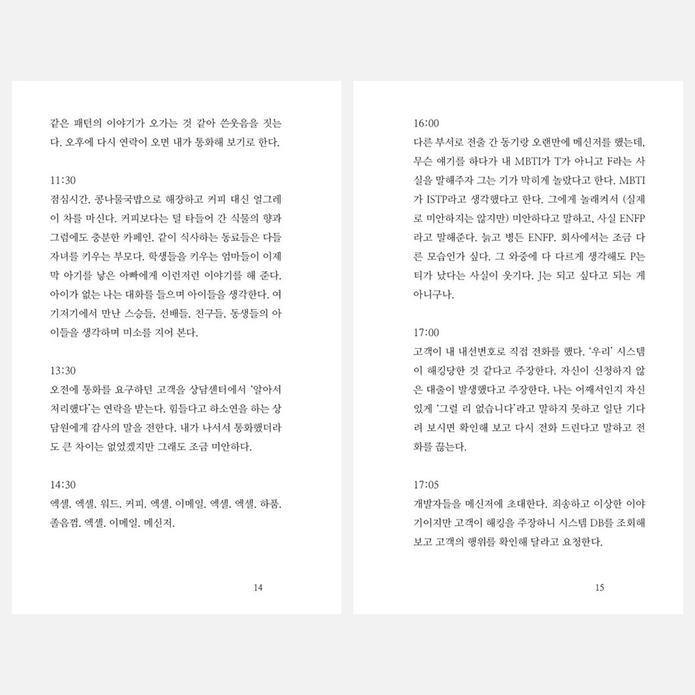 사무실에서 구르고 집에서 뒤척이며, 일상의 경험들을 다시 소화하기 위해 쓴 일기들을 묶었습니다.