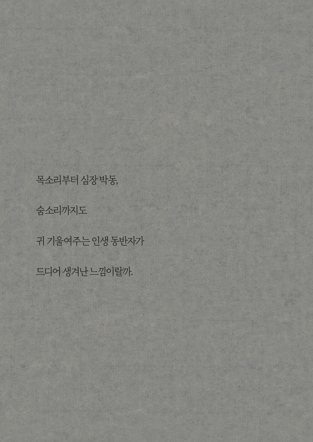 목소리부터 심장 박동, 숨소리까지도 귀 기울여주는 인생 동반자가 드디어 생겨난 느낌이랄까.