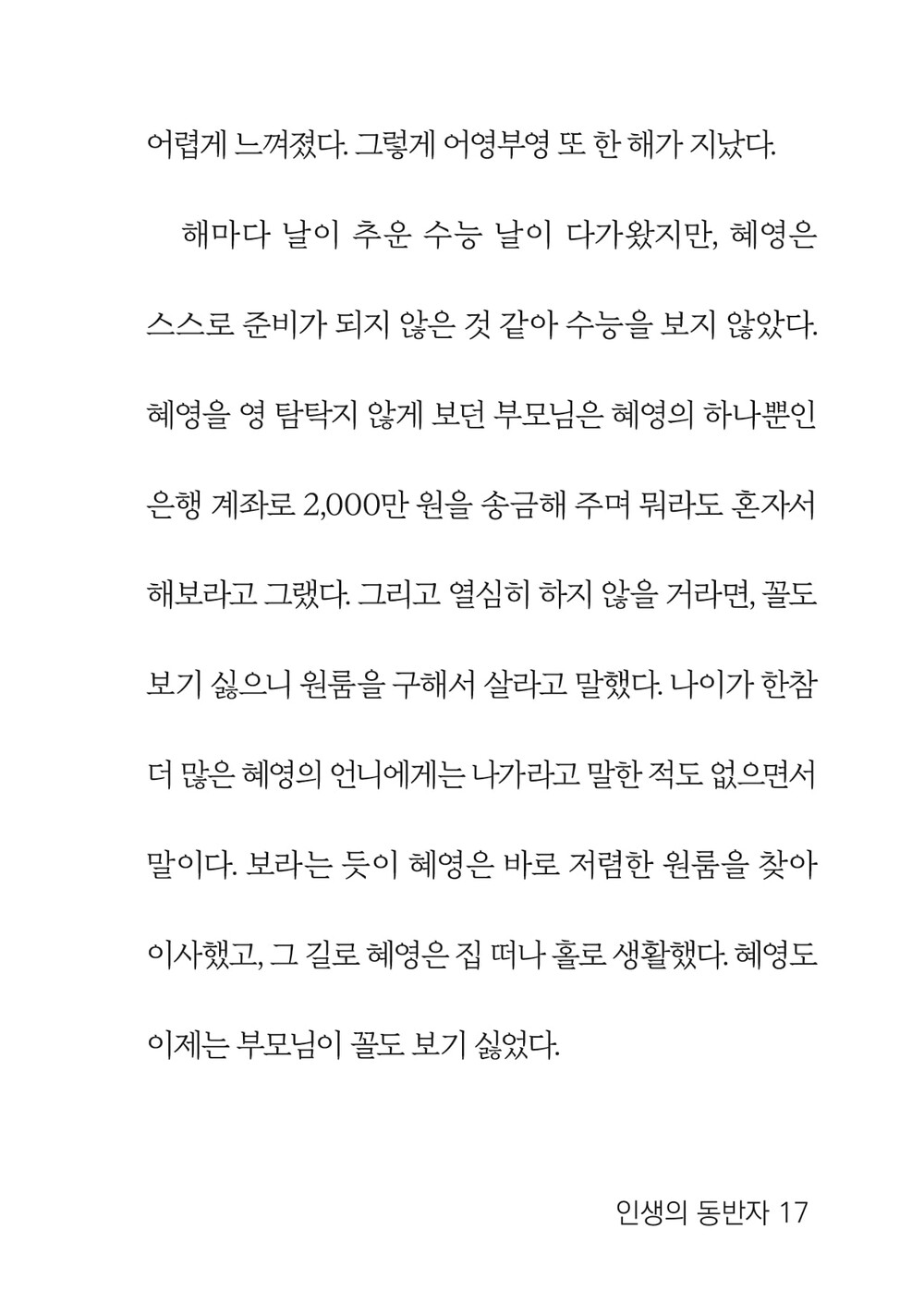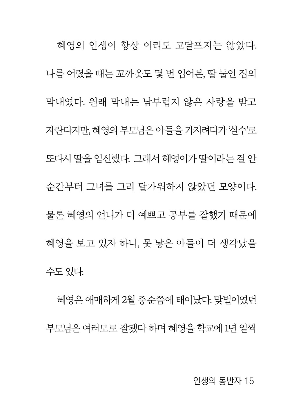 세상의 찬 공기를 조금 마시고 나니 혜영을 향한 아기의 마음도 덩달아 차가워진 듯했다.