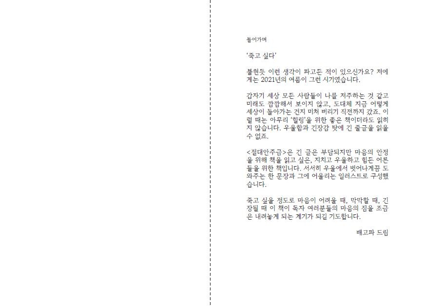 역설적이지만 사실 이 책은 제가 가장 우울했을 때, 그러니까 죽고 싶을 정도로 희망이 안 보였을 때