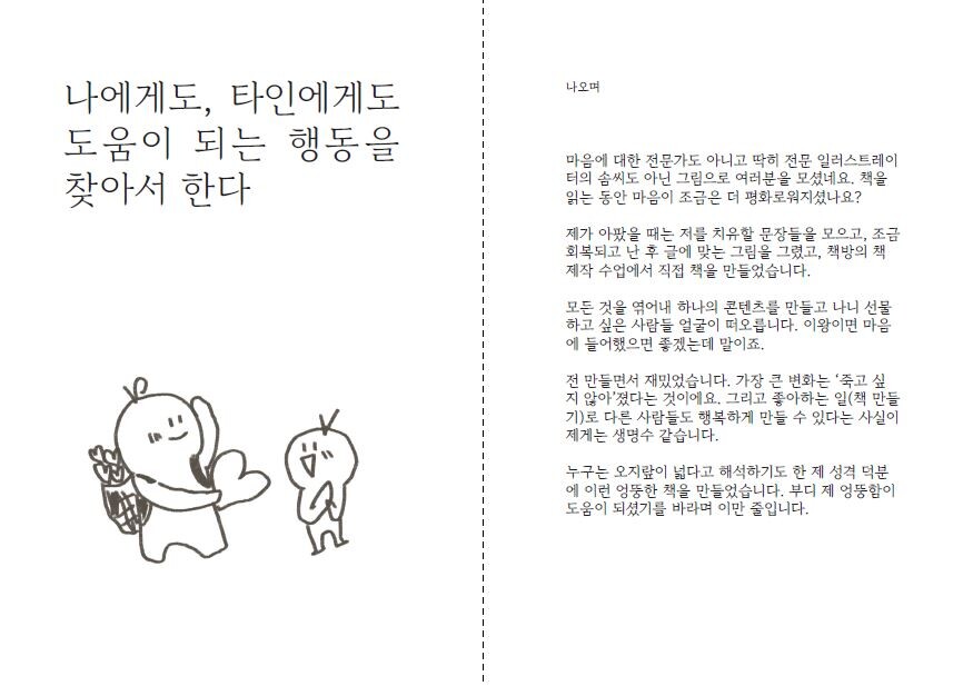 그리고 그렇게 쓴 문장을 기억하며 하루하루를 보내니 죽고 싶던 마음이 점차 사라졌습니다.