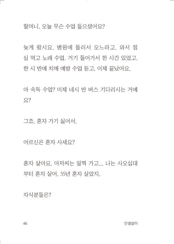 책은 약 3개월간 영등포에 사시는 어르신 2~30명과 나눈 대화들과,