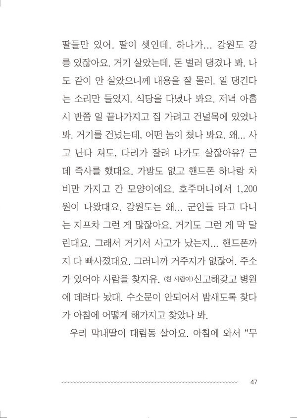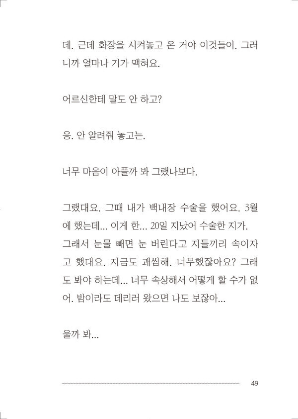 「이전까지 내게 '노인'은 대상이었는지도 모르겠다. 공경해야 하는 대상. 도와야 하는 대상. 공감할 수 없는 대상...