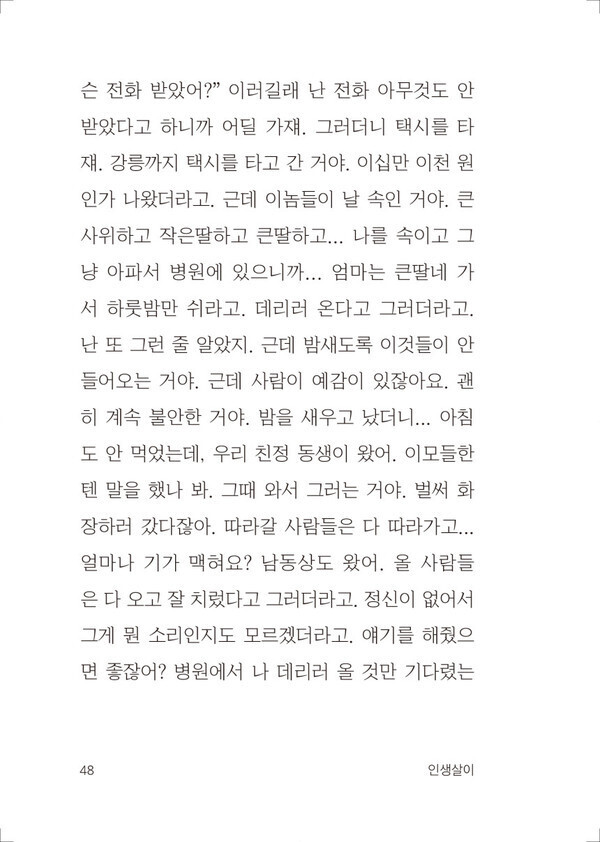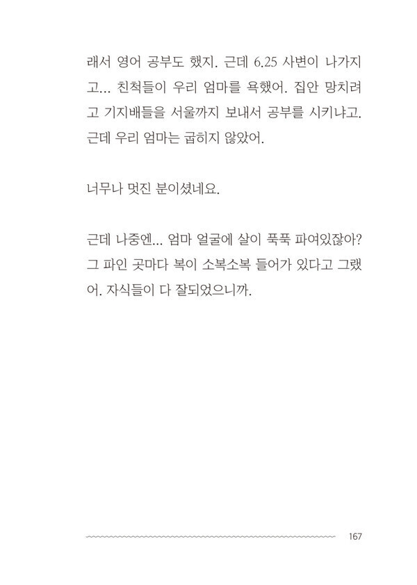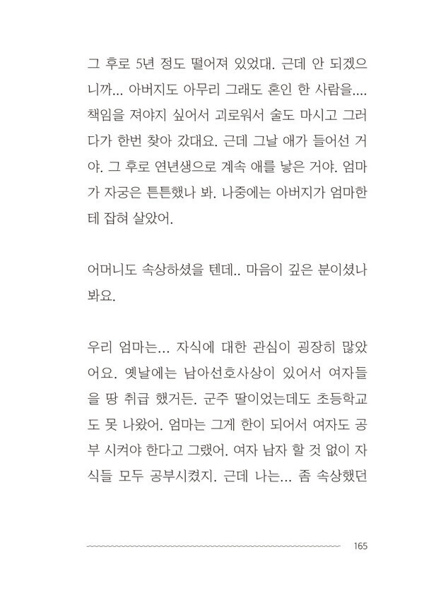 현재의 노년까지 모두 중첩된 그 이야기엔 아픔과 슬픔이 있었고, 기쁨과 충만과 서글픔과 지혜가 있었다.