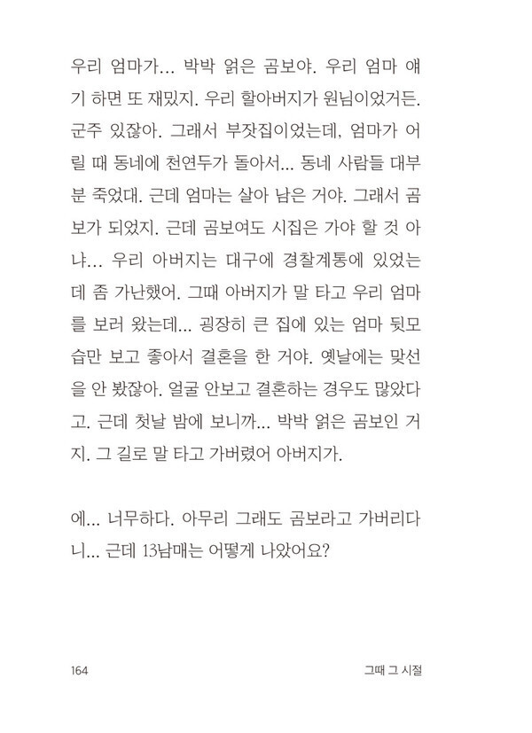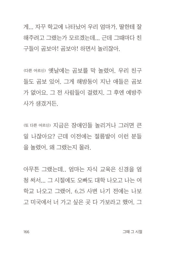 우리는 겪지 못한 너무 다른 세상을 겪어낸 사람들의 생생한 이야기가 담겨있다.