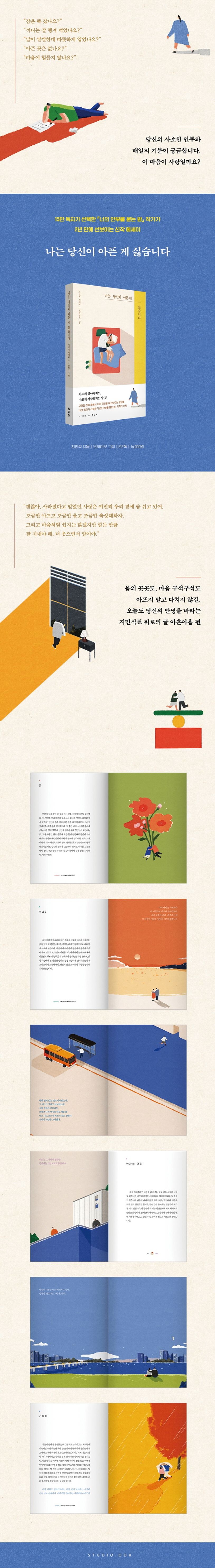 15만 독자의 마음을 울린 화제의 감성 에세이 『너의 안부를 묻는 밤』의 지민석 작가가 2년 만에 선보이는 신작. 당신의 사랑은 어떠한지, 이별의 아픔에 잠 못 이루진 않는지 다정히 안부를 전하며 독자를 위로했던 작가의 손길이 이번 책에서 한결 더 따뜻해졌다. 작가가 세상을 포착하는 시선이 넓어지고 누군가를 들여다보는 마음이 깊어진 까닭이다. 그래서 『나는 당신이 아픈 게 싫습니다』에는 몸의 어느 곳도, 마음 구석구석도 아프지 않고 다치지 않으며 너무 힘들지 않게 하루를 살아내길 바라는 작가의 간절한 염원이 아흔아홉 편의 글마다 고이 담겼다. 지치기 쉬운 요즘, 일상을 나누고 안부를 전하는 일의 소중함과 함께 사랑하는 마음을 담아 귀한 이에게 선물하기 좋은 책이다.