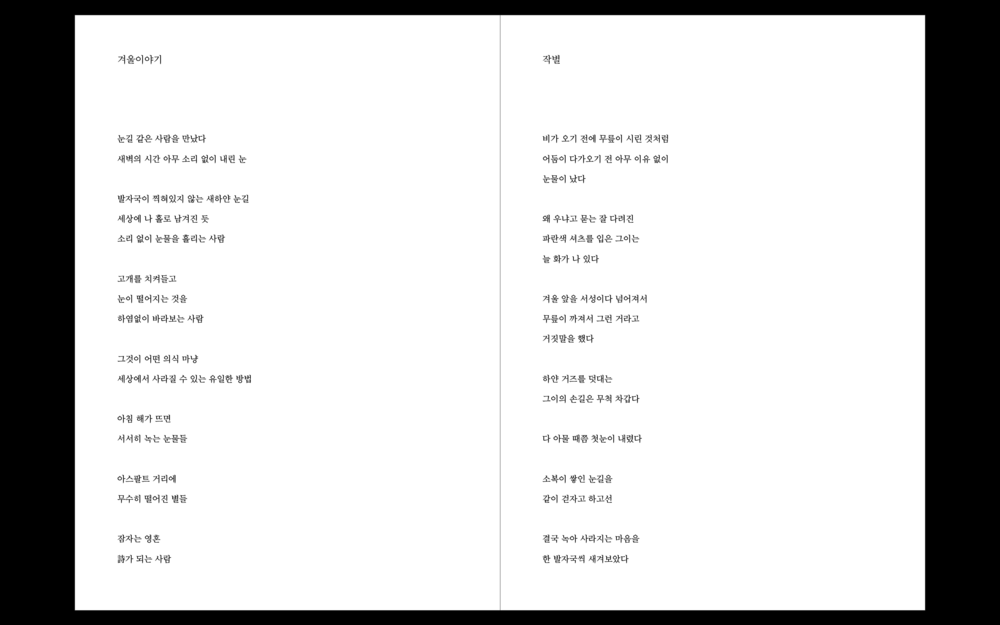<눈길>, <겨울이야기>, <작별>이라는 시가 위와