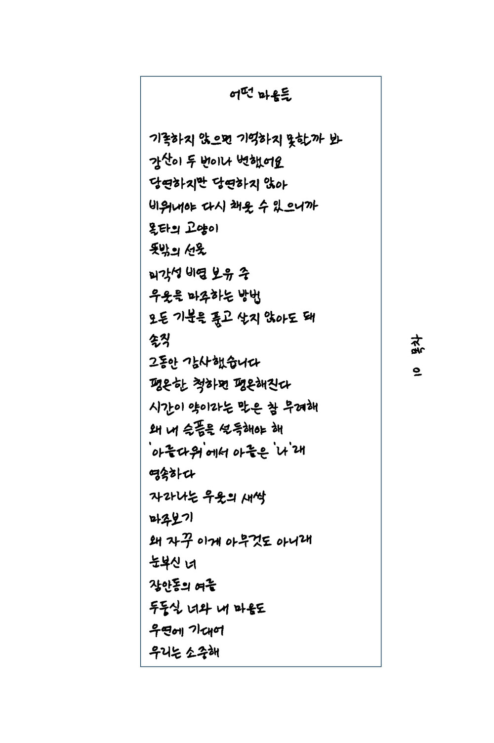 빈 공간은 뭐든지 채울 수 있다는데, 사실 그 무언가를 찾을 수도 찾고 싶지도 않은데.