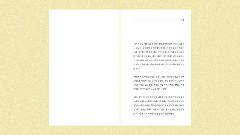 ‘이것까지 써도 될까’ 싶은 글을 나누면서 우리는 자신과 서로의 욕망에 눈을 떴다.