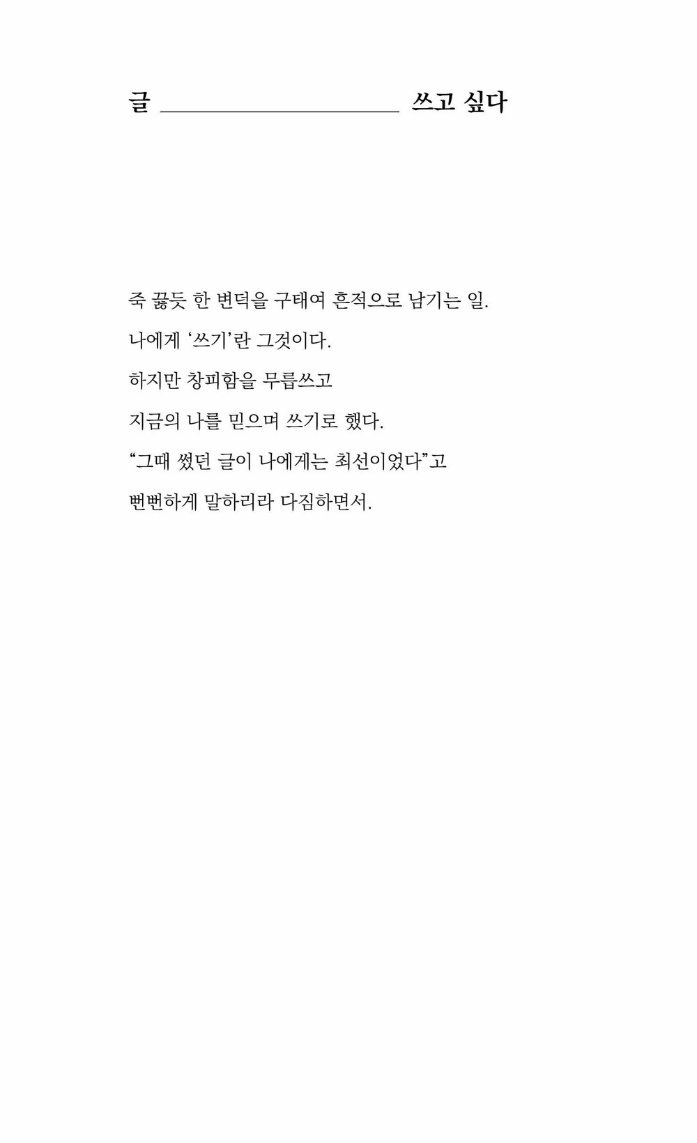 욕망 가득한 우리의 문장이 어떤 이에게 잊고 지냈던 ‘싶’을 만나는 계기가 되기를 바라며 이 책을 썼다.