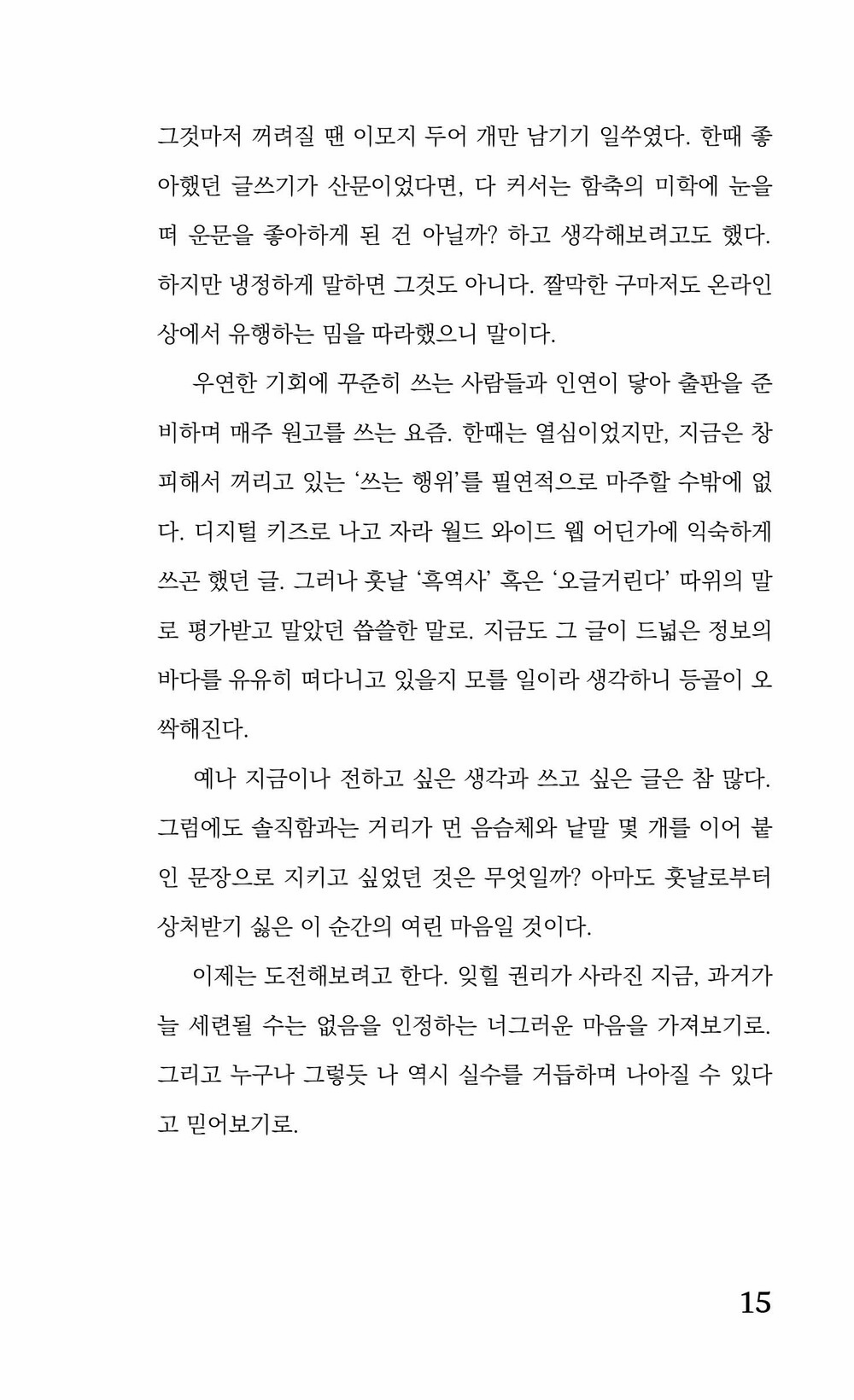 그게 뭐였는지 잃어버린 사람들에게 보내는 이메일의 마지막 문장 같은 글들이 모였다.