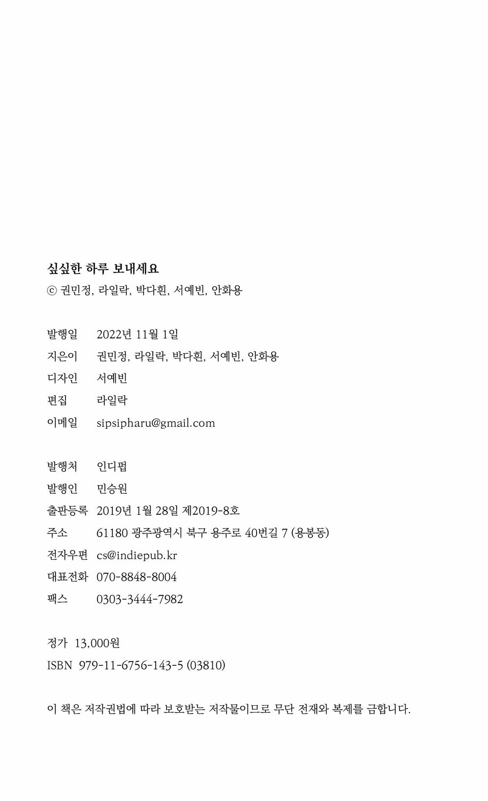 싶싶한 하루 보내세요 / 권민정, 라일락, 박다흰, 서예빈, 안화용