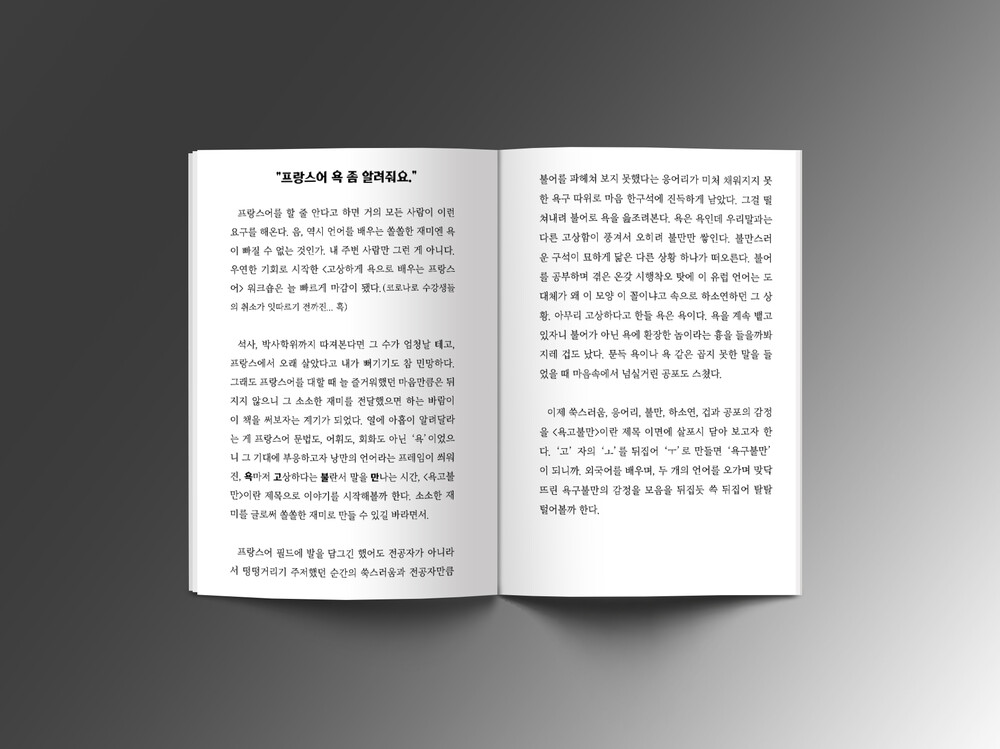우리 마음 속에 쌓여버린 욕구불만을 낭만의 언어 '프랑스어'의 욕으로 고상하게 떨쳐내보고자 하는 글을 담은 에세이입니다.
