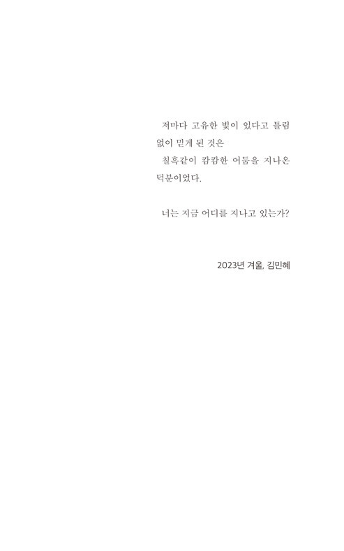 김민혜를 읽기 전에는 이런 일들이 가엾거나 슬픈 몸부림 같았지만, 이젠 안다.
