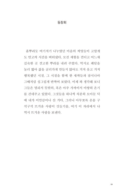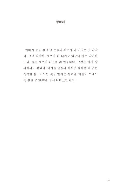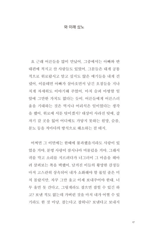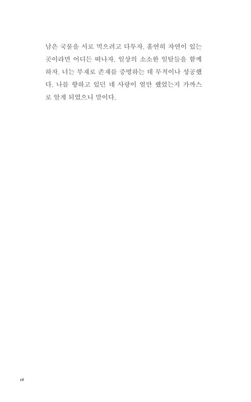 지나간 것을 ‘너’라고 부르는 일이나 지나가고 싶은 것들에 대해 씩씩하게 안간힘을 쓰는 일.