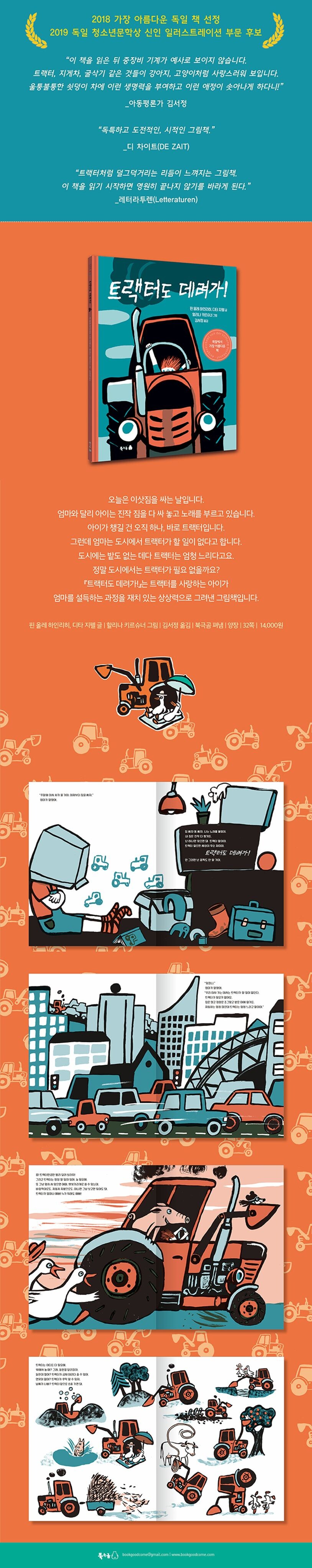 독일 청소년문학상 수상 작가 핀 올레 하인리히가 참여한 『트랙터도 데려가!』는 2018년 독일에서 가장 아름다운 책으로 선정되었으며 영국과 캐나다를 비롯한 세계 여러 나라로 수출되어 많은 독자들의 사랑을 받고 있습니다.