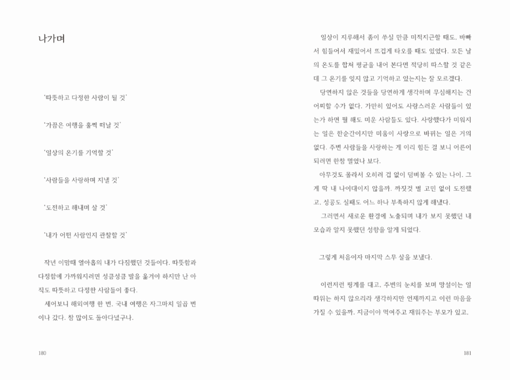 나만의 길을 걸으며 살아가는 스무 살의 한 해 기록.