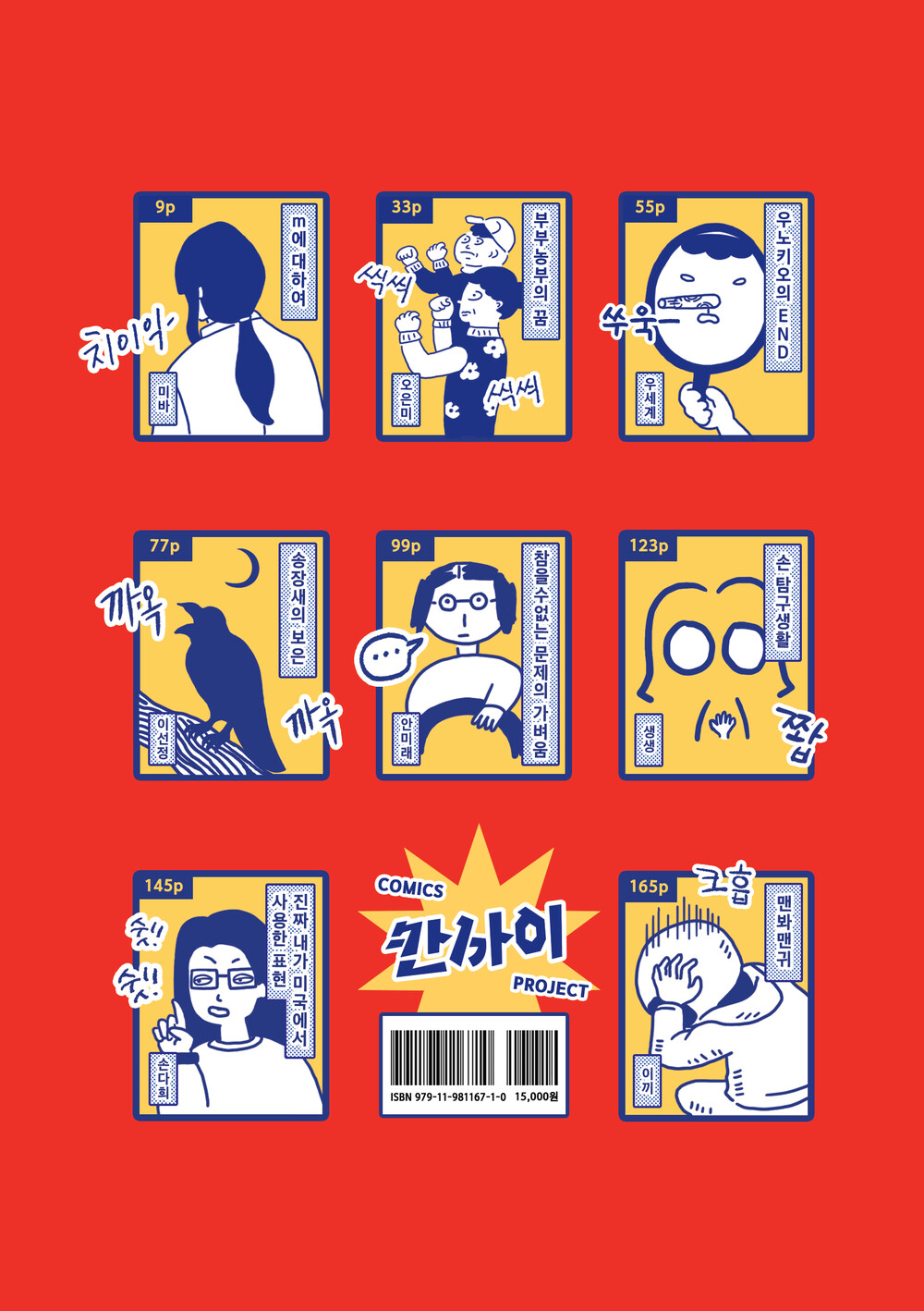 한 겨울에 만나 봄이 오는 동안 서로의 칸과 칸을 마주하며 완성한 책 『칸사이』는 저마다의 삶이 녹아 있는 꾸밈없는 만화책이다. 여덟 편의 다채로운 이야기가 독자들에게 첫 인사를 건넨다.
