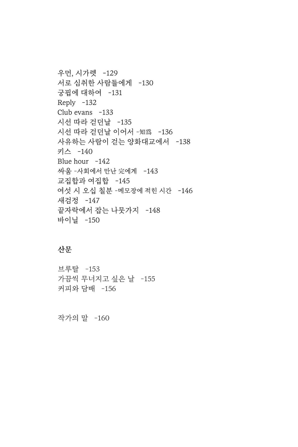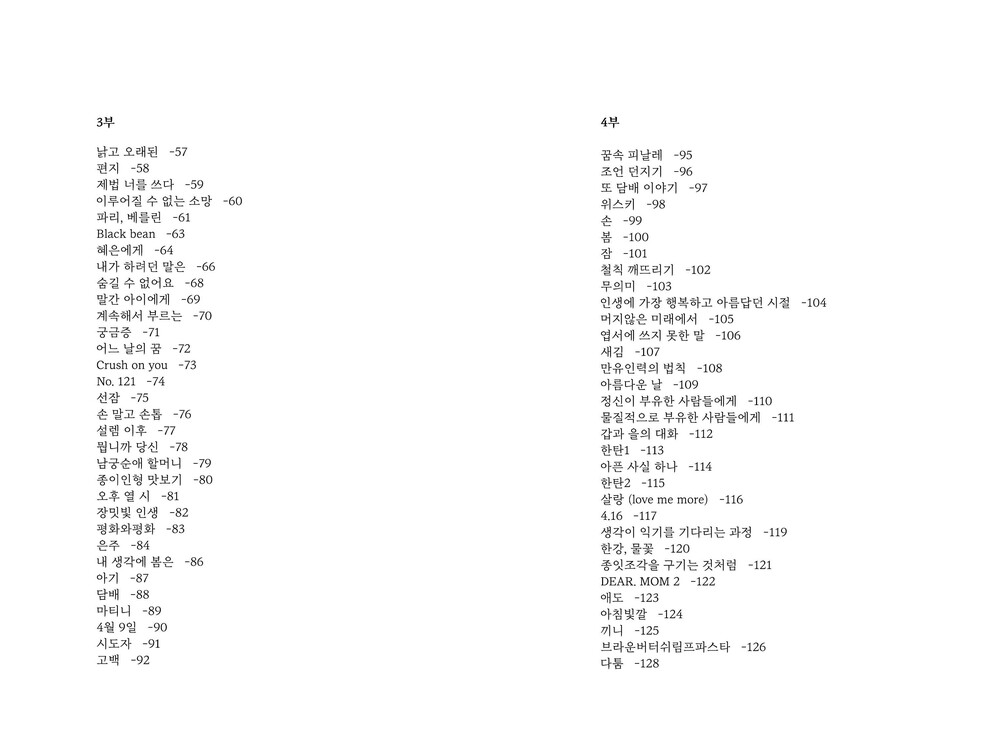 1부, 2부, 3부, 4부, 번외) 산문 1, 2, 3