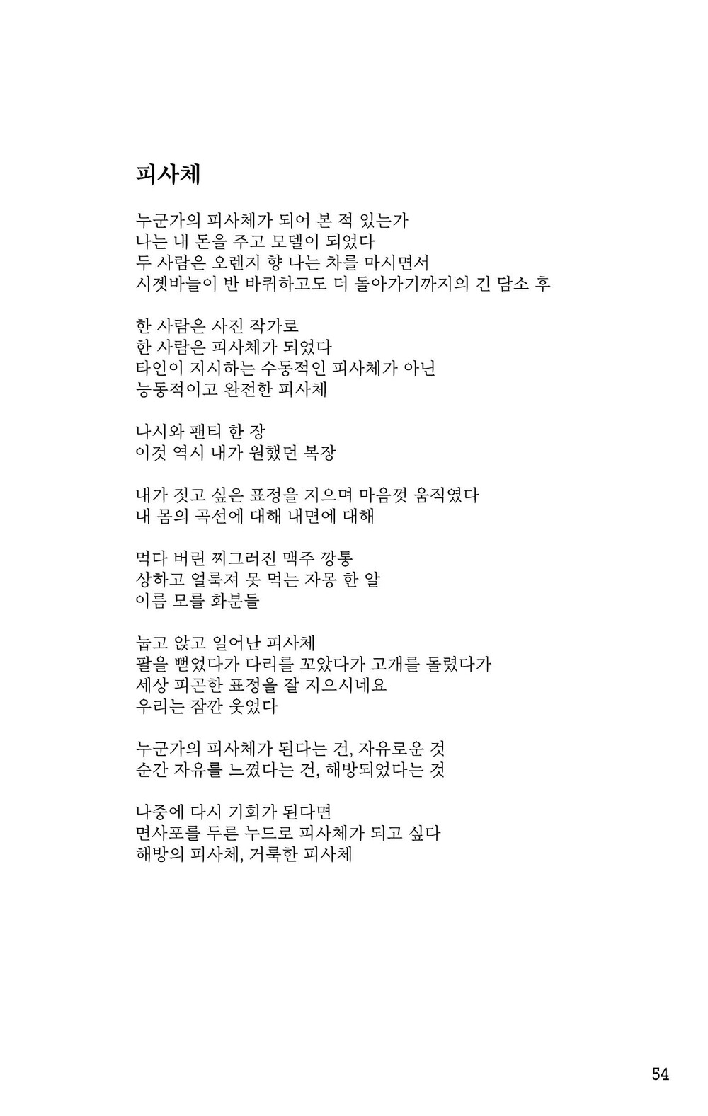 시를 왜 쓰냐는 질문에, 최승자 시인의 말을 인용하고 싶습니다. 저는 저를 쓸 뿐입니다.