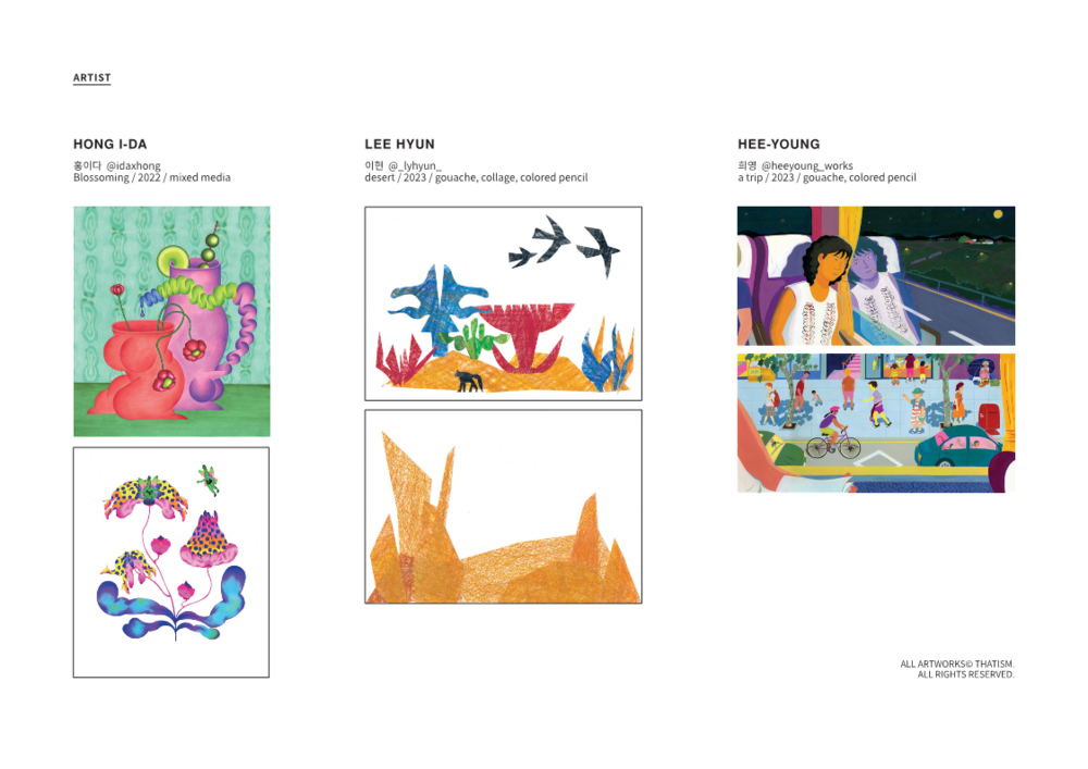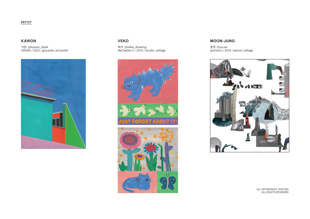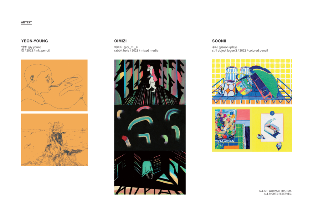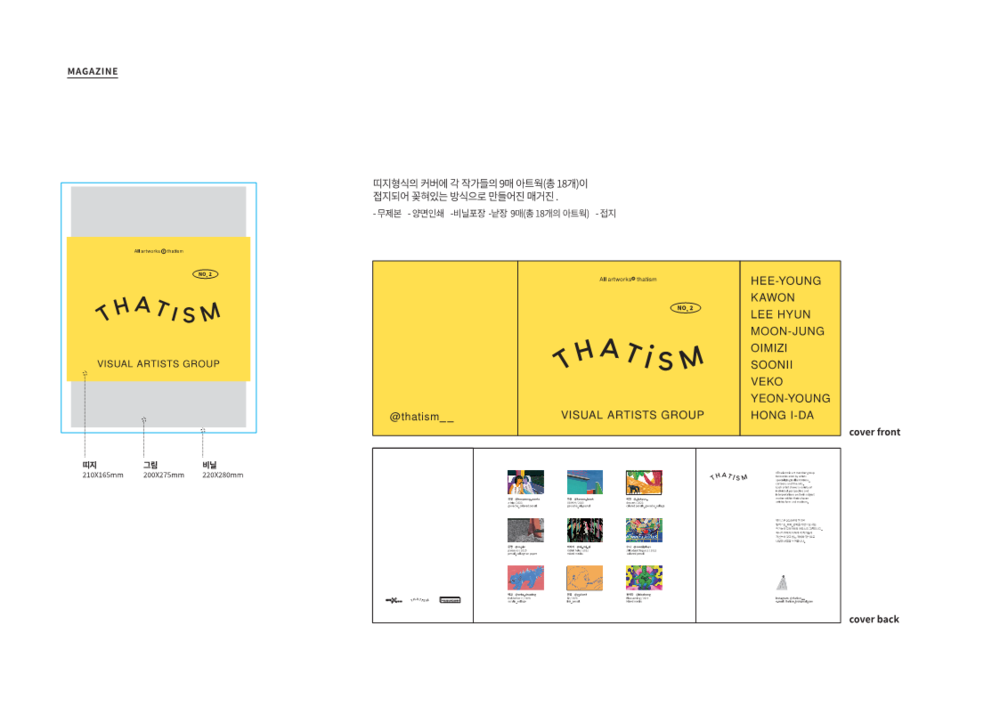 입고를 문의 드리는 아트진은 저희 댓이즘 9명의 작가들이 총9개 페이지를 작가마다 하나의 페이지에, 각자의 컨셉을 바탕으로 스타일과 형식을 담아 작업하여 엮어낸 잡지입니다.