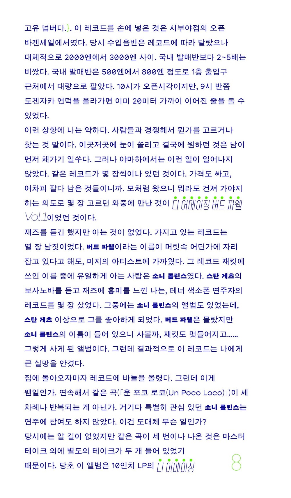 바다를 건너고, 언어를 배우고, 친구를 사귀고, 돈을 쓰고, 시간을 썼다. 재즈를 찾는 데 생을 할애한 거다.