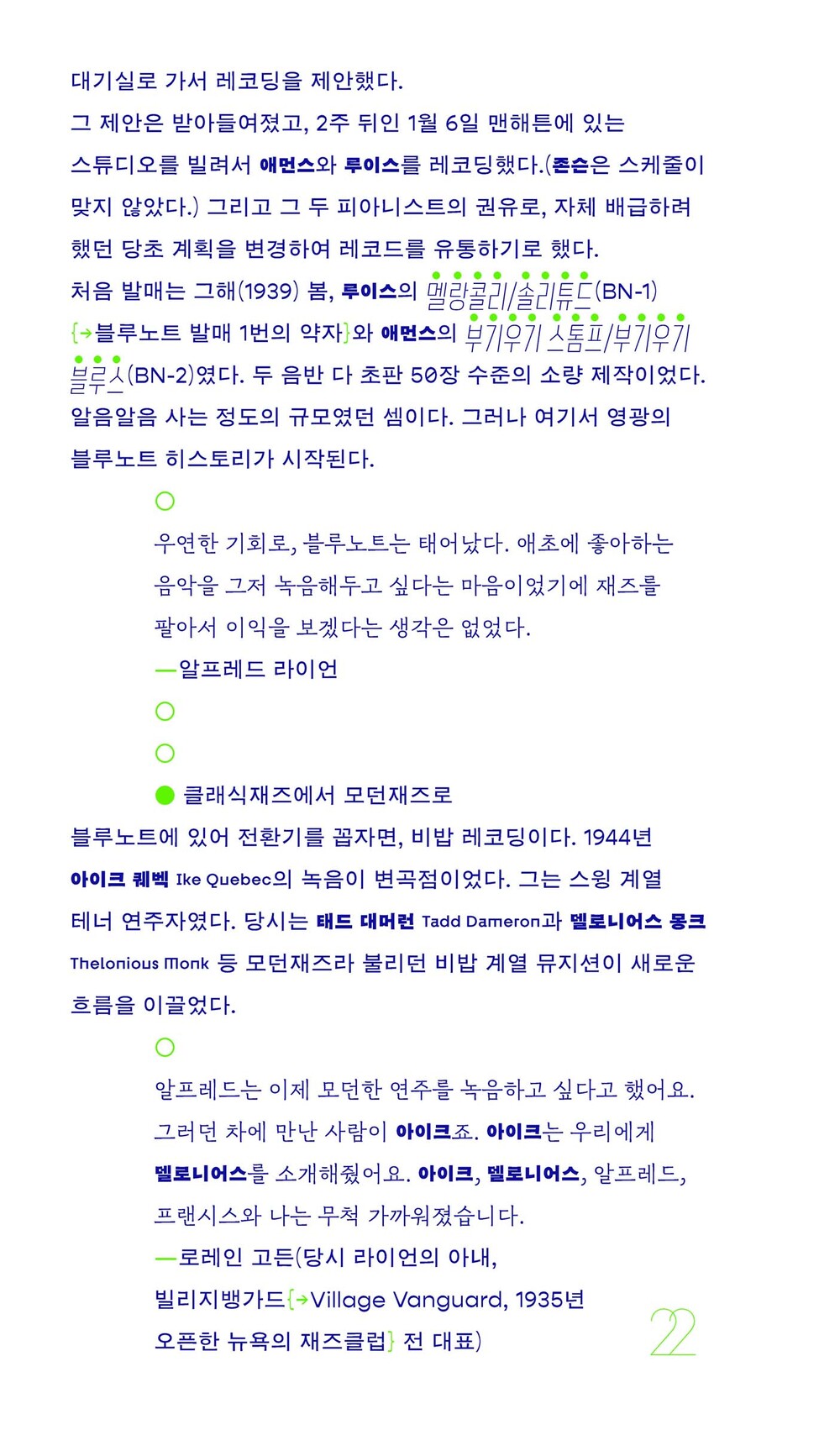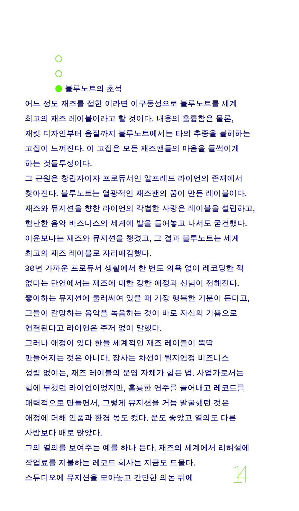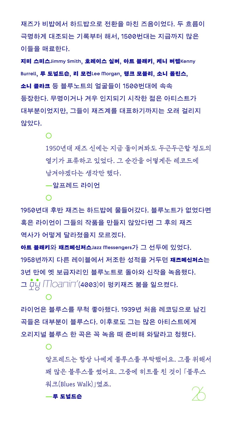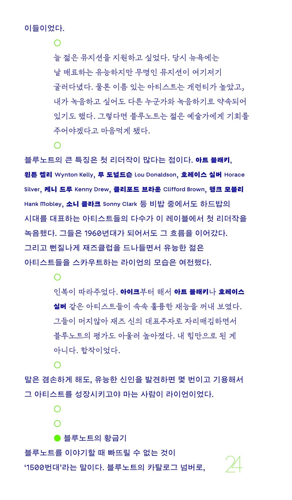이 책은 블루노트를 만드는 우당탕탕 창업 스토리도, 존 콜트레인이나 마일스 데이비스의 쿨한 현대적 신화도 아닌,