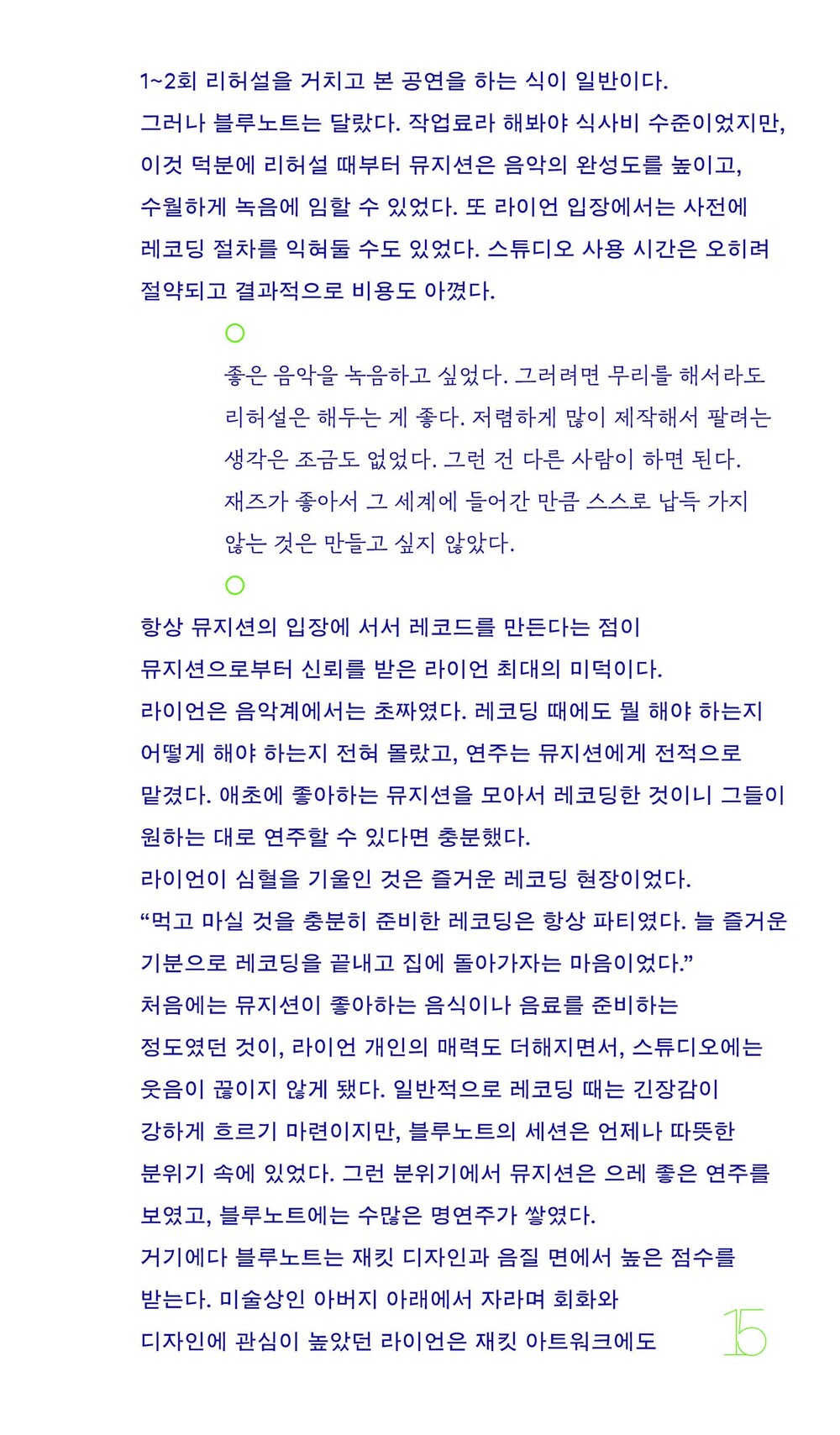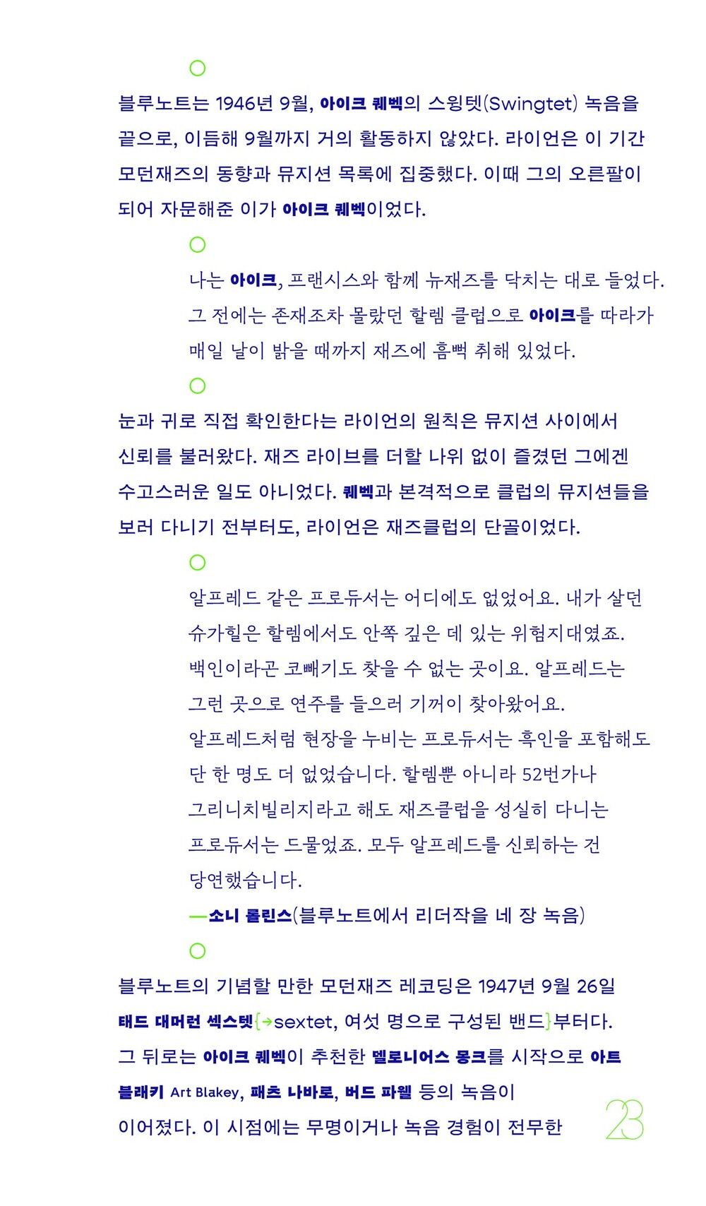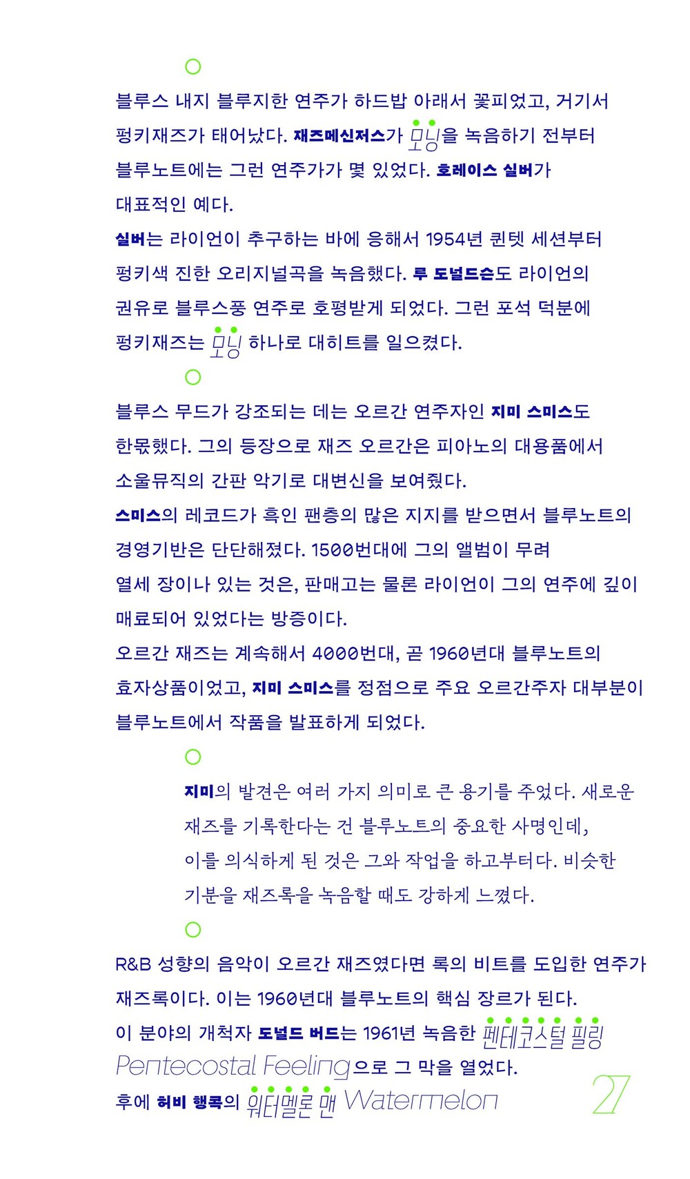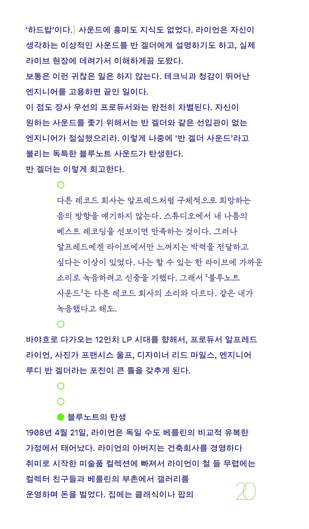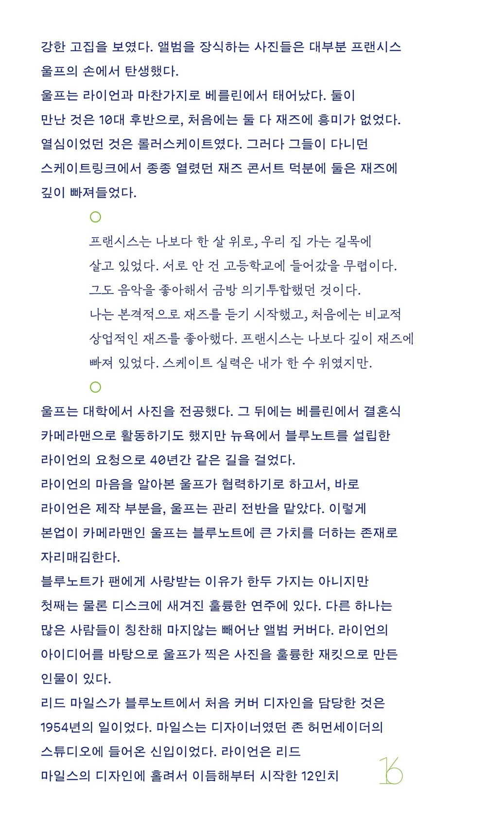 이 책은 블루노트를 만드는 우당탕탕 창업 스토리도, 존 콜트레인이나 마일스 데이비스의 쿨한 현대적 신화도 아닌,