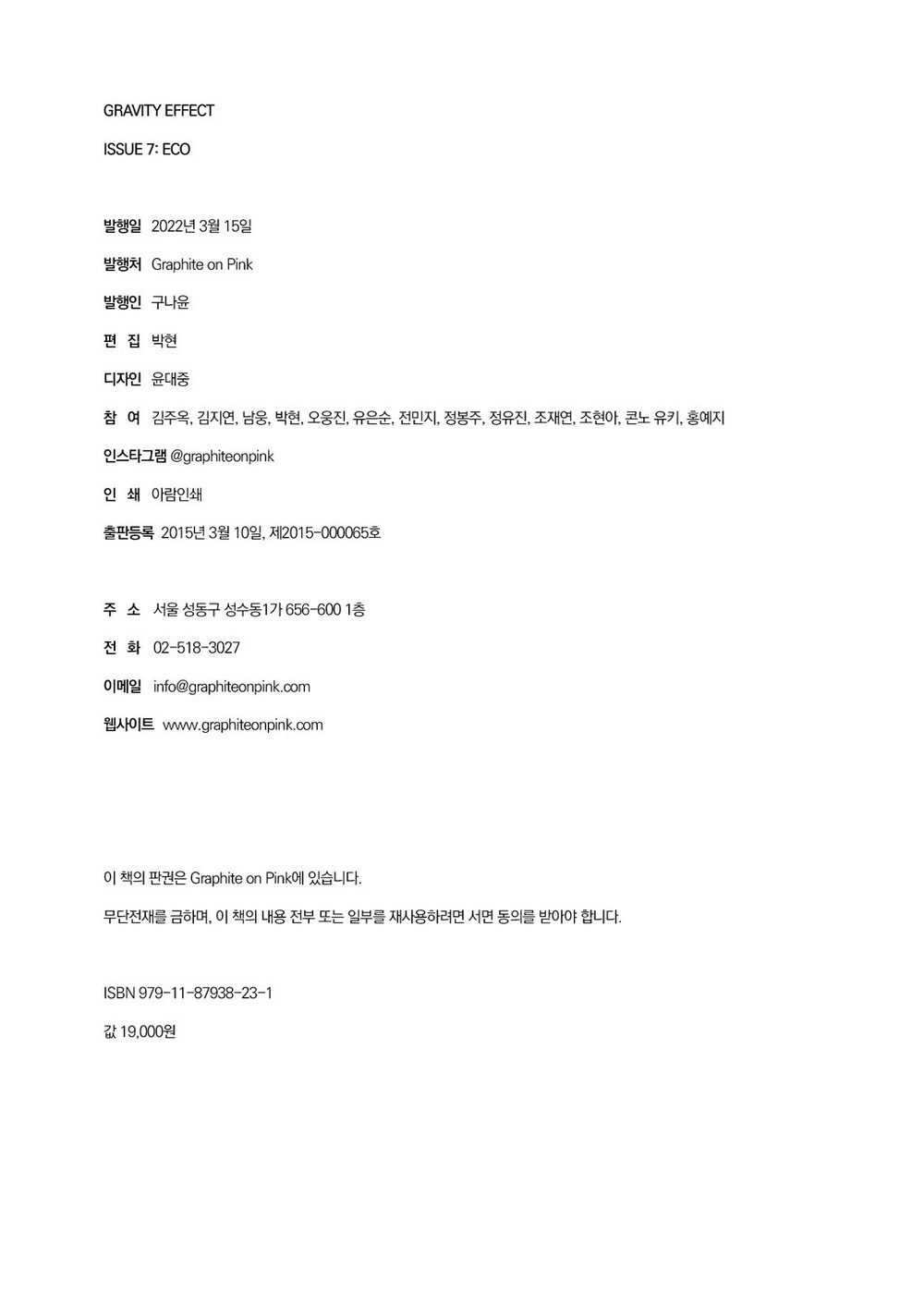 GRAVITY EFFECT ISSUE 7 : 에코 / 그레파이트온핑크