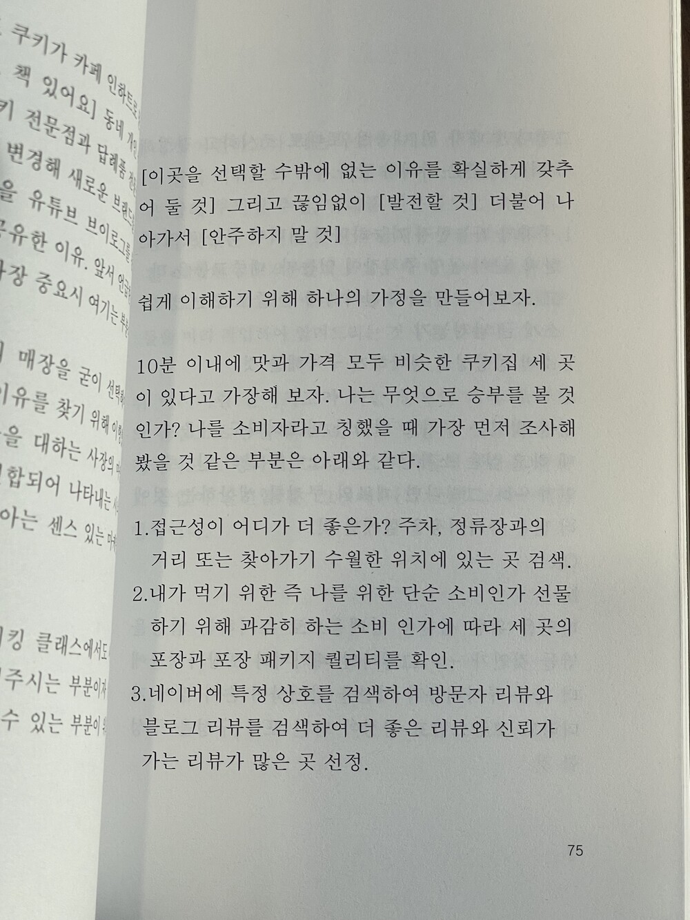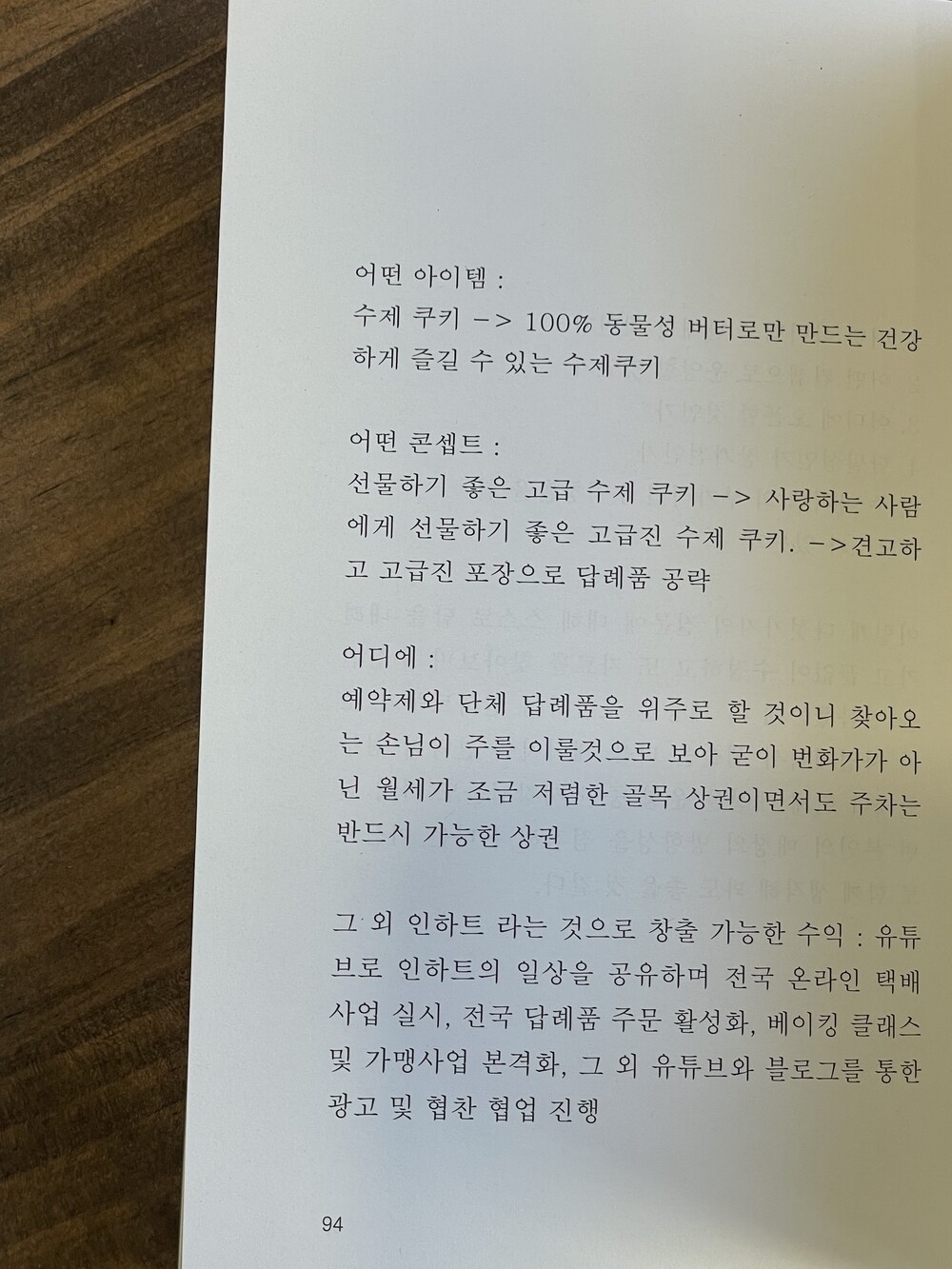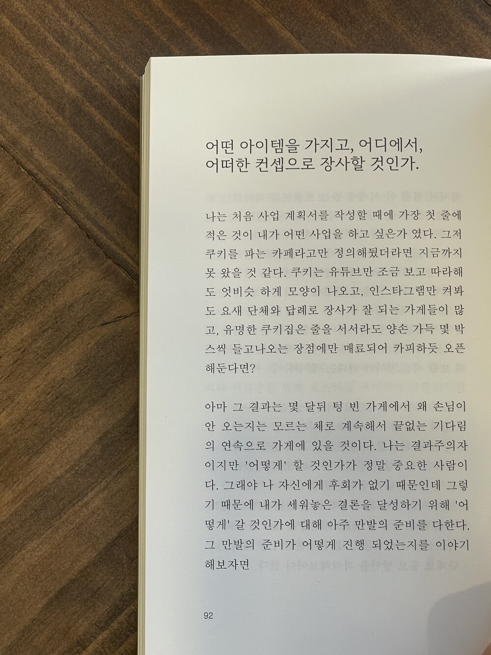 처음 가게를 오픈하고 가장 먼저 파악하려 한 것은 소비자들이 무엇에 지갑을 열게 되는가였다. 요즘 소비자들은 다방면으로 기준치가 높아졌다. 나는 처음 사업 계획서를 작성할 때에 가장 첫 줄에 적은 것이 내가 어떤 사업을 하고 싶은가였다. 그저 쿠키를 파는 카페라고만 정의해뒀더라면 지금까지 못 왔을 것 같다. 어떠한 아이템이 먹히는 것인지, 그 아이템을 어떻게 먹히게 할 것인지, 누가 먹을 것인지, 어떠한 태도와 서비스를 갖춰야 하는지 각기 다 다르게 세부화하여 구축해둬야만 한다. 백지 종이 한 장과 연필 한 자루 그리고 트렌드를 검색할 수 있는 휴대폰까지. 이 세 가지로 할 수 있 는 모든 걸 해보자.