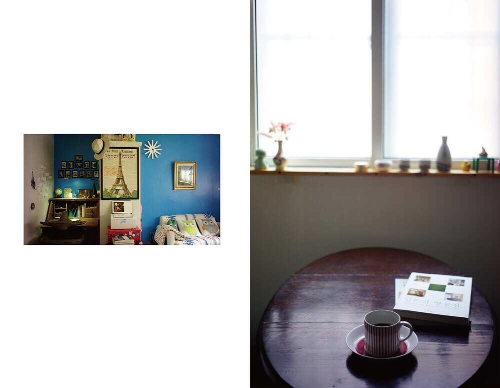 1인 도시생활자의 영원한 식구는 결국 자신이다. 나를 위한 장소를 정성스럽게 가꾸는 일은 곧 나를 존중하는 일이고, 긍정하는 일이다. 직장 상사가 던지는 볼펜에 맞고 돌아온 저녁에도 우아한 블루의 거실을 마주하면 마음이 단단해졌다. 나는 결코 당신이 함부로 할 수 있는 사람이 아냐 라고, 힘주어 말할 자신이 생겨났다. 잿빛 세상일지라도 내 심장의 색깔은 블루니까.
