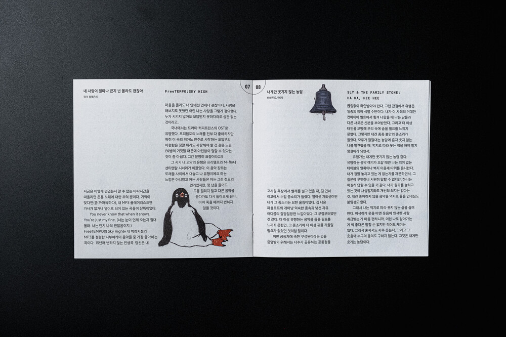 좋아했던 음악을 모아봅니다. 저마다의 감성으로 이루어진 음악 속에 유독 마음이 끌리는 시대와 장르가 있습니다. 아마도 그때의 유행을 좋아하는 거겠죠. 플라잉펭귄피자 1호 유행에서는, 나만의 유행을 타는 12명의 인물로부터 그들의 유행가와 그 유행가를 얻었던 음악의 시절을 조망했습니다. 관련 플레이리스트는 책 첫 페이지의 QR 코드를 통해 접근할 수 있어, 읽는 즐거움과 함께 청각적 경험도 누릴 수 있습니다.