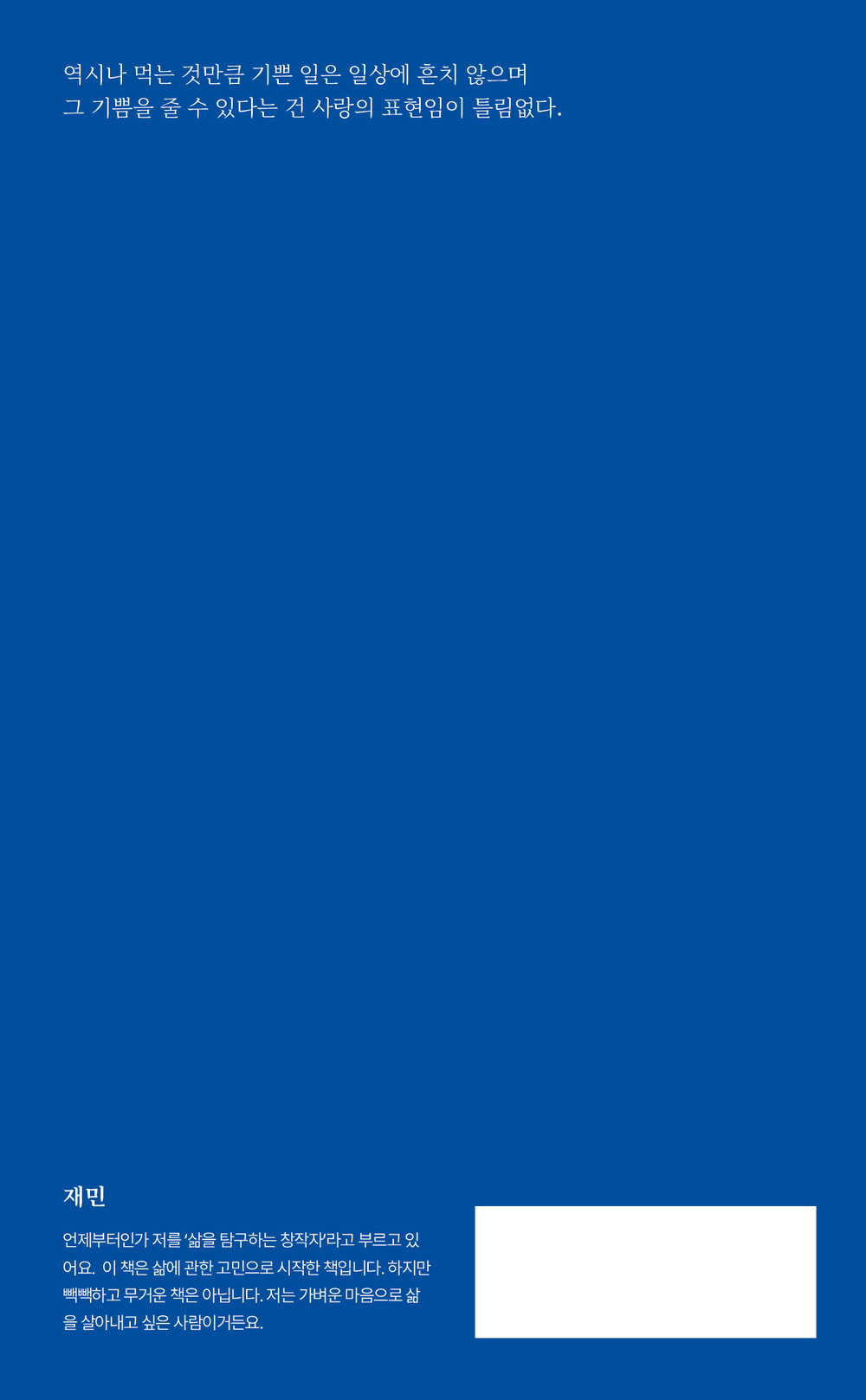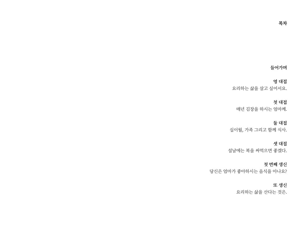 식사 대접을 위해 레시피를 배우고, 요리 연습을 하고, 시장을 보고, 식탁에 올리면서 겪은 이야기를 엮었습니다.