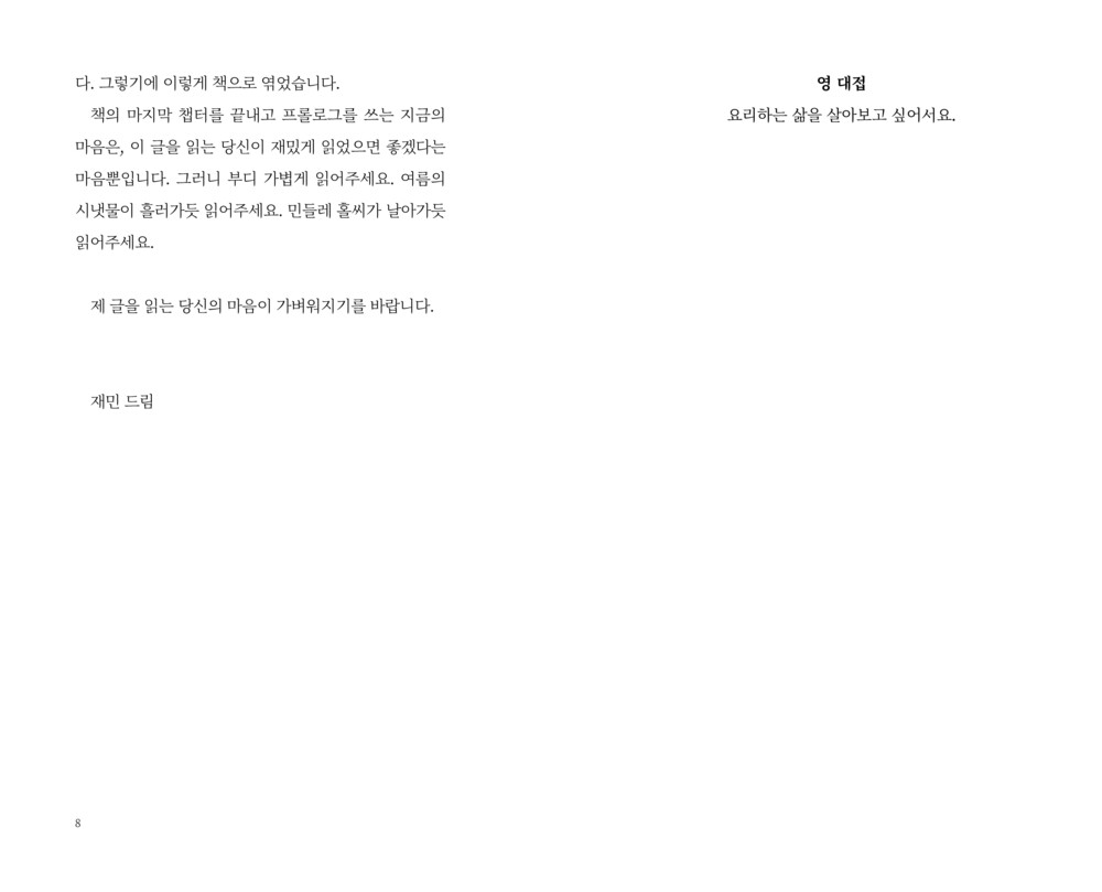 이 책은 삶에 관한 고민으로 시작한 책입니다. 하지만 빽빽하고 무거운 책은 아닙니다.