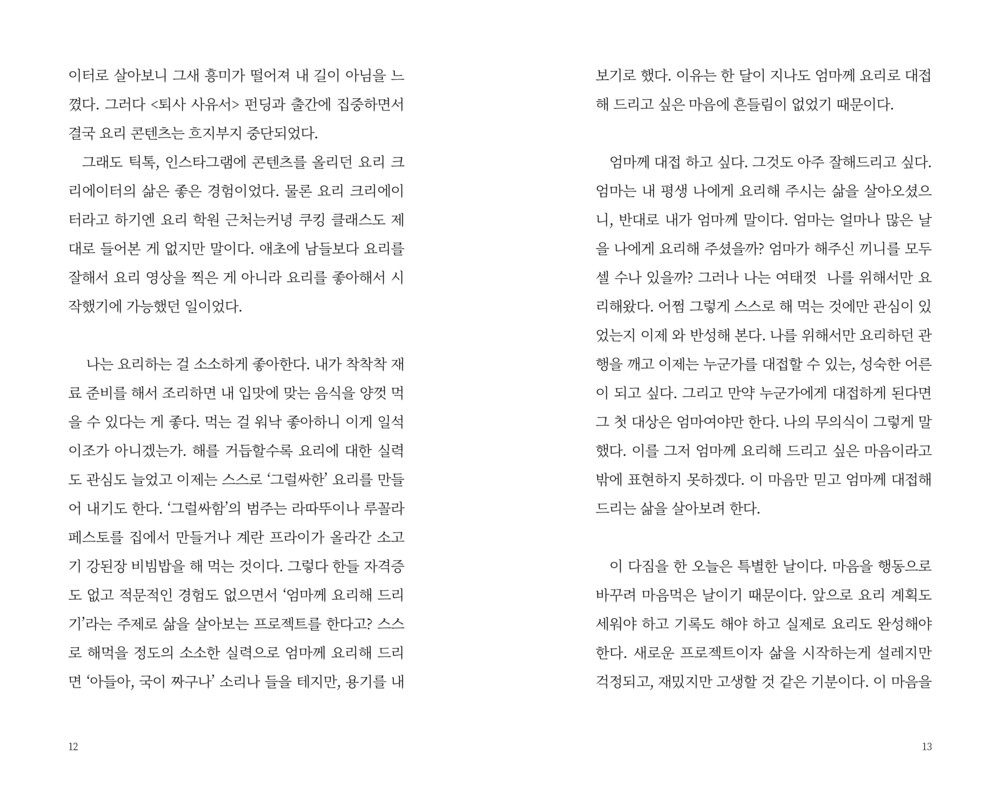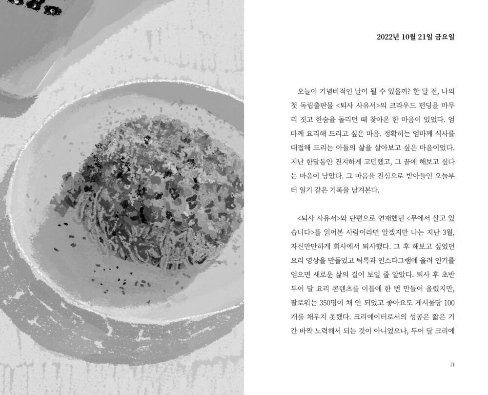 한 해전 저는 『퇴사 사유서』를 출간하고 엄마께 요리를 해드렸습니다.
