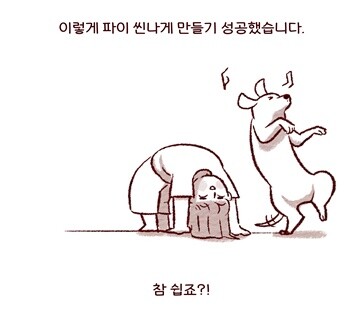 너는 그냥 건강하기만 해라 | 견주의 촉 | 따끈한 파이 | 아내 재우기 | 왜 눈치가 보이는지... | 싱글 침대의 추억 | 눈 대신 털 | 항문낭 냄새는 못 참아! | 전기장판보다 위험해 | 소재 고갈의 이유 | 오해입니다 | 건치 파이 | 언니는 파이 언어 전문가 | 파이 전용 자판기 | 먹보 개에게 약 먹이는 법 |필라테스는 무서워 | 마사지 좋아! | 하얀 눈밭 위의 추억 | 불도저 파이 | 해피박스 | 공포의 촵스텝 | 개로부터 사과를 지키는 법 | 오빠는 내 심장 | 숨바꼭질 | 파이 씬나게 만들기 | 행복의 증거 | 너와 함께하는 기쁨 | 개의 마음을 본다는 것은