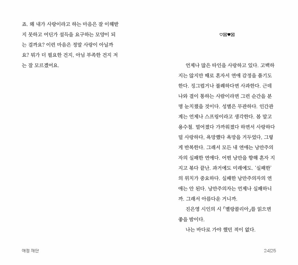 그래서 모든 내 연애는 낭만주의자의 실패한 연애다. (p. 25)