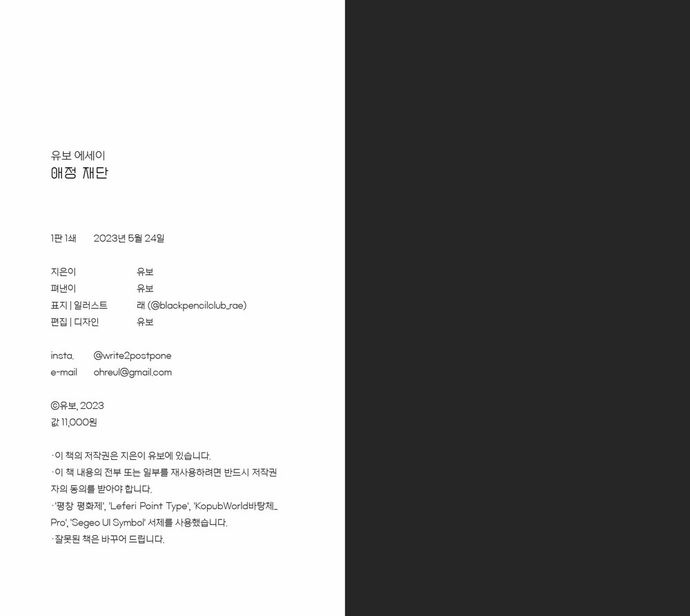 유보 에세이 <집, 어느 민달팽이의 유랑>, <애정 재단>유보 시집 <하지가 지나고 장마가 끝나도>