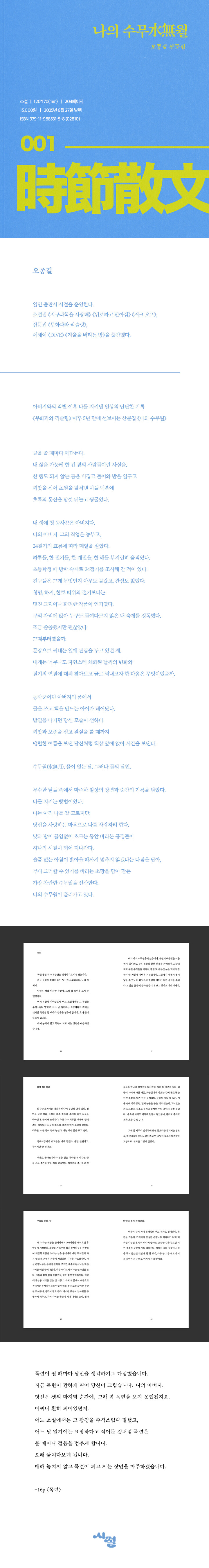 무수한 날들 속에서 마주한 일상의 장면과 순간의 기록을 담았다. 나를 지키는 방법이었다. 나는 아직 나를 잘 모르지만, 당신을 사랑하는 마음으로 나를 사랑하려 한다. 낮과 밤이 끊임없이 흐르는 동안 바라본 풍경들이 하나의 시절이 되어 지나간다. 슬픔 없는 아침이 밝아올 때까지 멈추지 않겠다는 다짐을 담아, 부디 그러할 수 있기를 바라는 소망을 담아 만든 가장 찬란한 수무월을 선사한다. 나의 수무월이 흘러가고 있다.