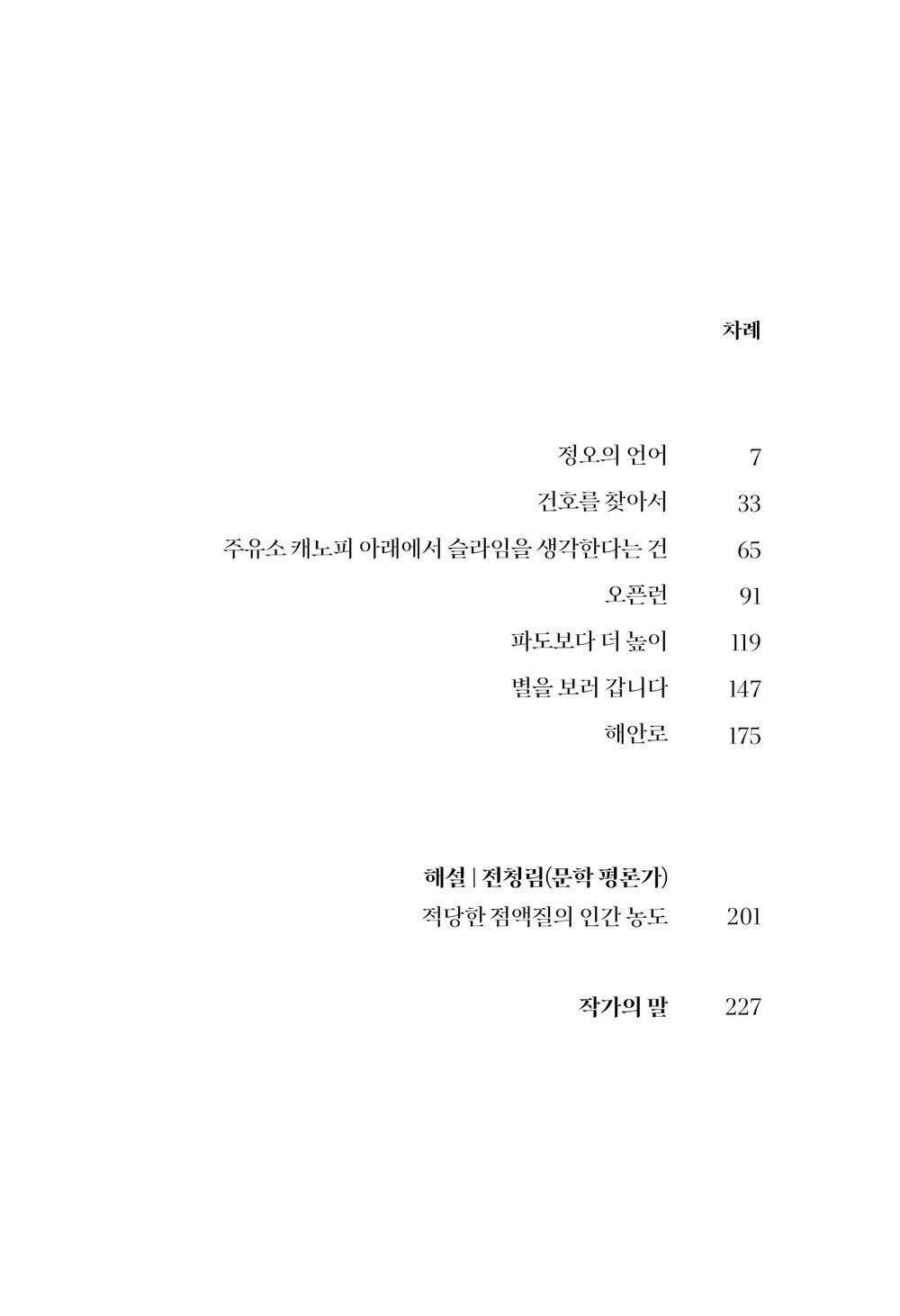높이 떠 있는 캐노피를 보고 있으니 마음 한편에 위로 비스름한 감정이 일었다. 주유소도 폐업하는 마당에 슬라임이 망하는 건 아무것도 아니지. 응, 아무것도 아니지. 주유소가 폐업한 것과 케이가 슬라임 사업을 접은 건 아무런 연관이 없었지만 폐업한 주유소의 모습을 보고 있으니 알 수 없는 위안이 들었다.