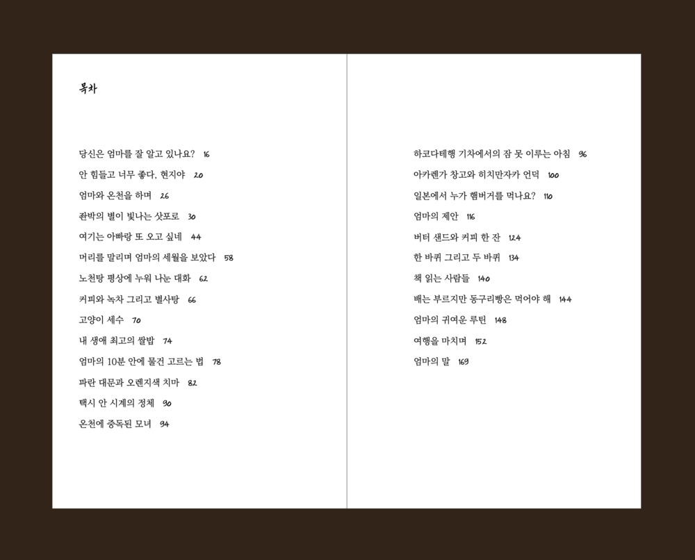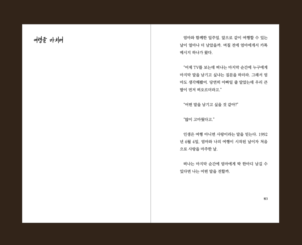 여행 이야기보다는 엄마에 관한 생각과 감정을 담아낸 글들로 채워졌습니다.