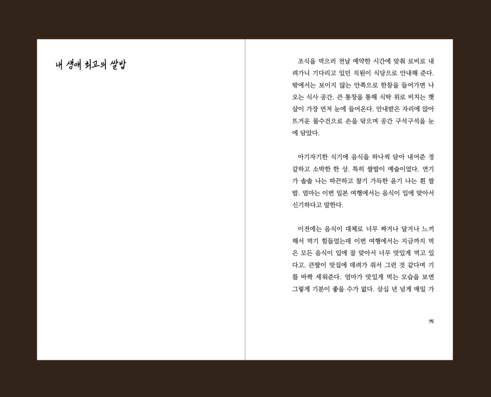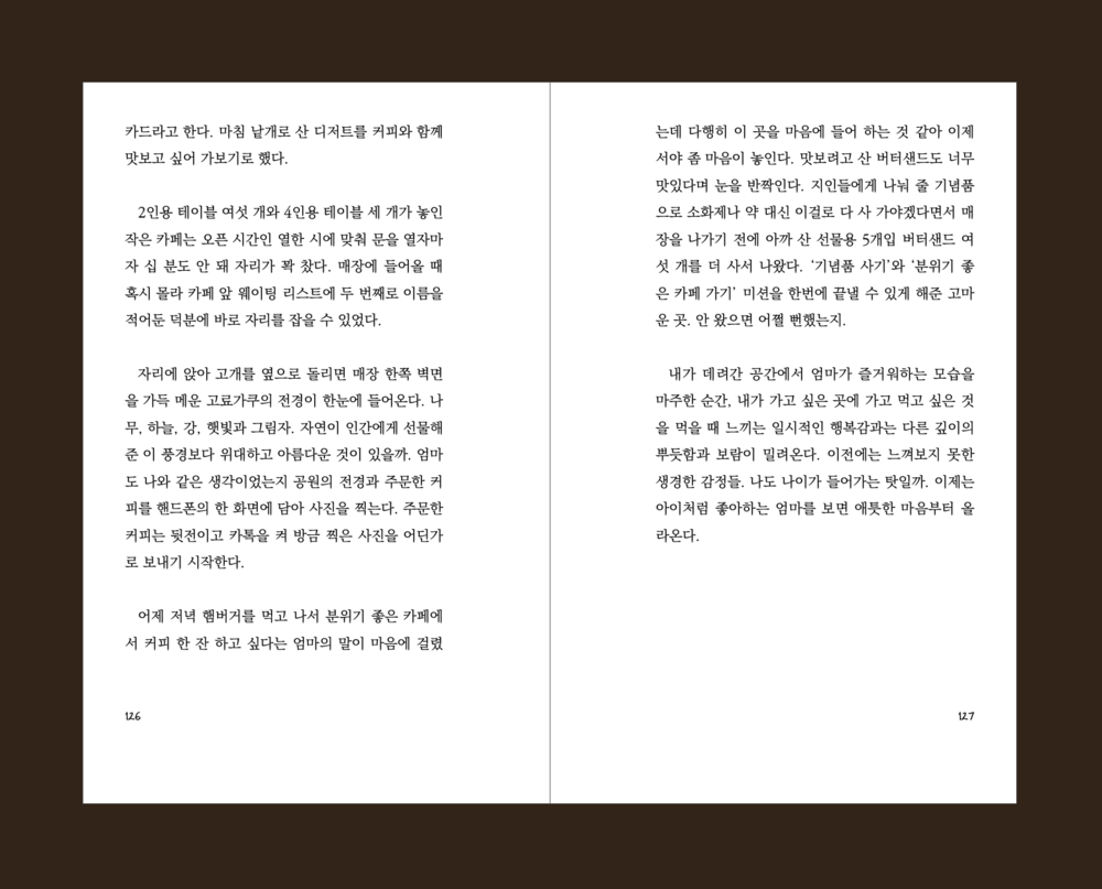 엄마와 함께한 일주일 동안, 평소에는 느끼지 못했던 낯선 감정과 생각에 잠기곤 했습니다.