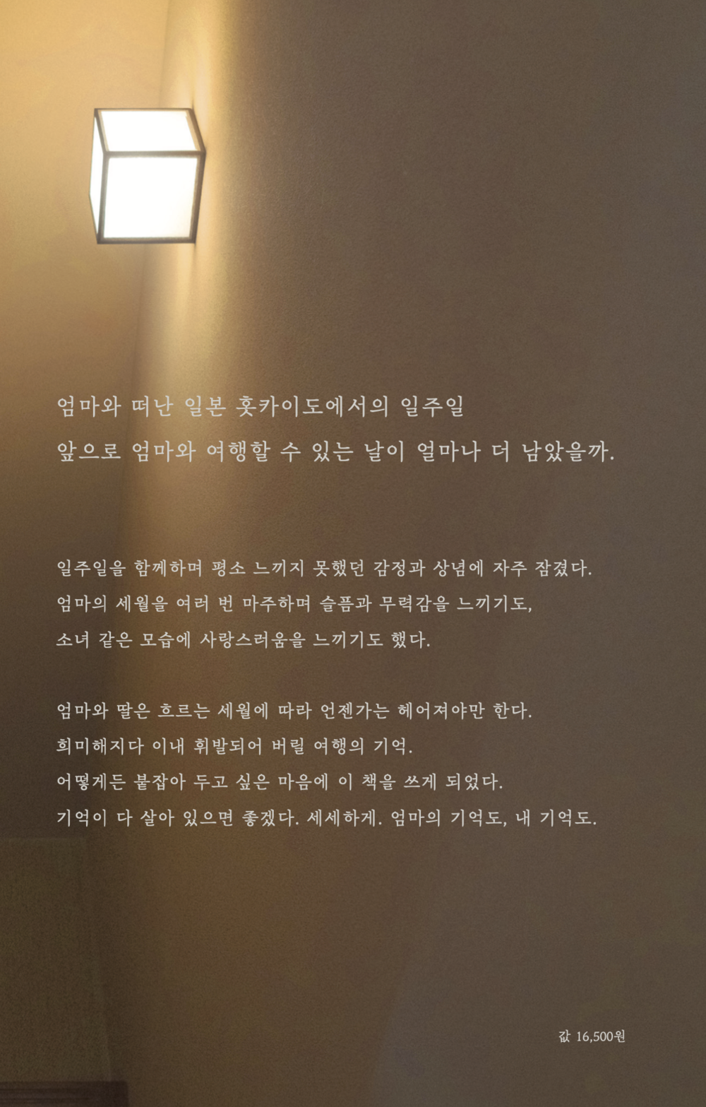 엄마와 함께 일본 홋카이도를 일주일간 여행하며 써 내려간 단상을 엮은 에세이, <엄마, 은경>