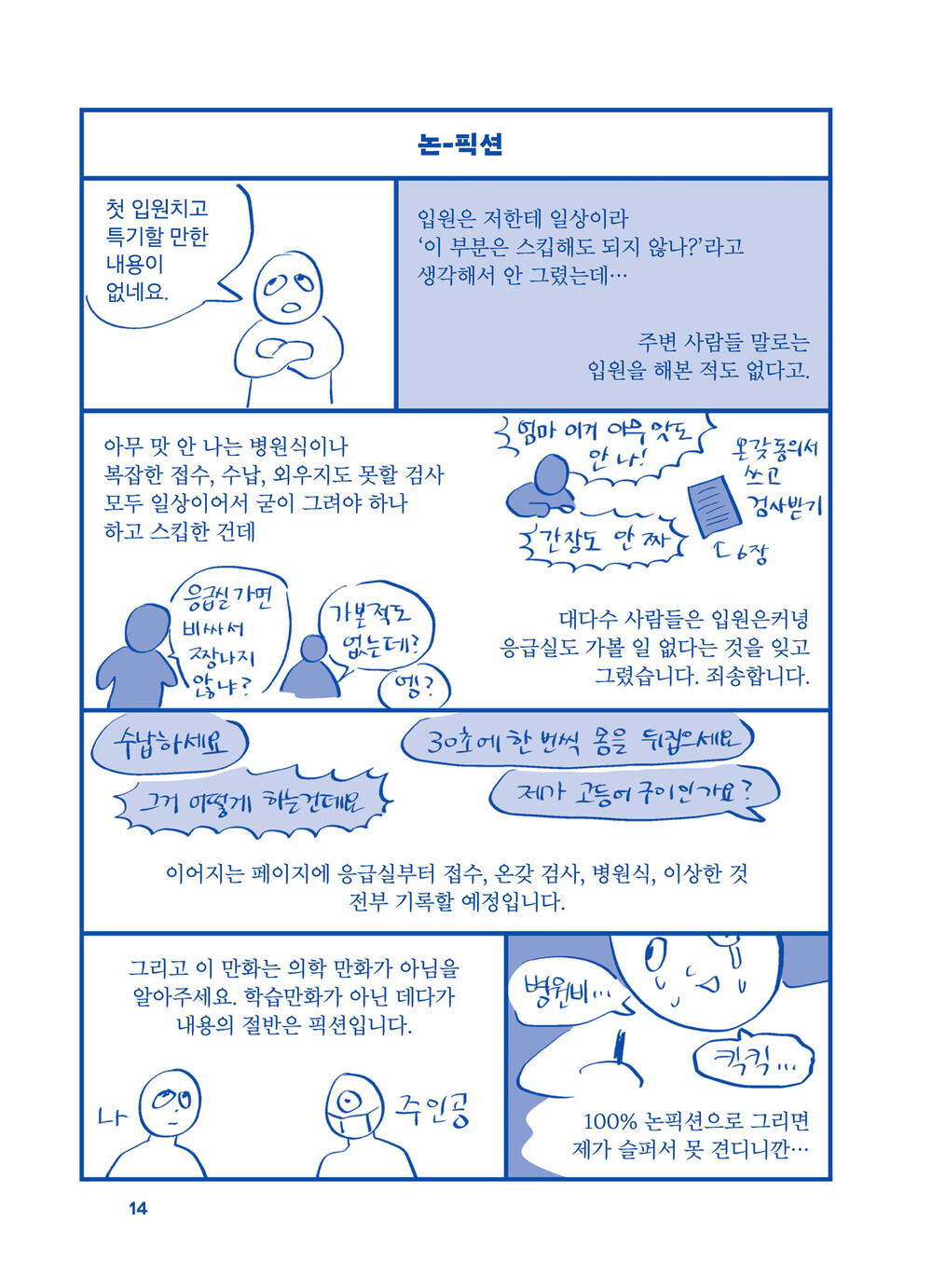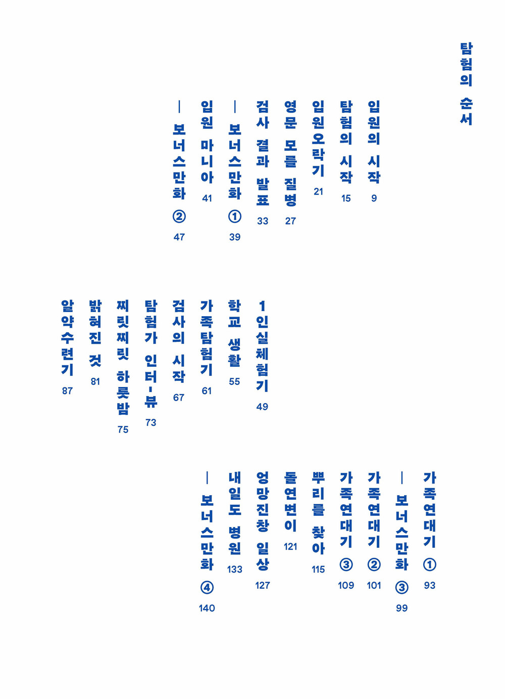 몇 차례로 끝날 줄 알았던 병원탐험이 회차를 거듭해가며, 극한의 고독과 무료 속에서 제 적성을 발견하고,