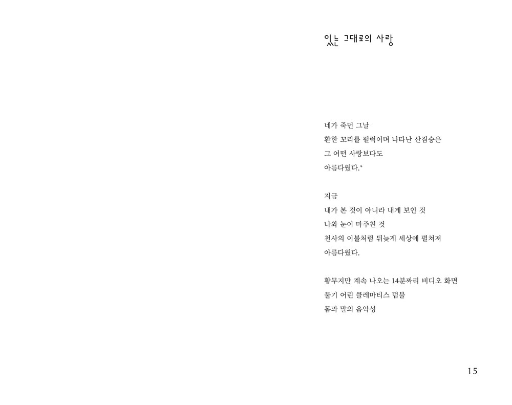 "난해한 그녀의 말들을 나는 겨우 알아듣는다 아니 나만이 겨우 이해할 수 있다