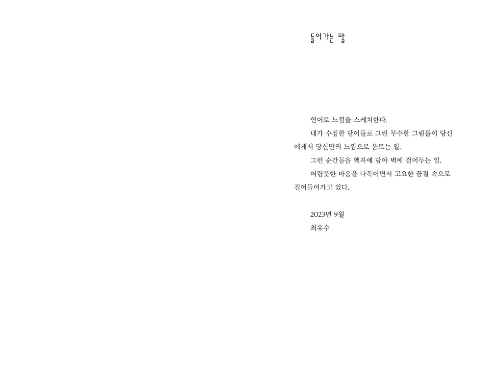 내가 수집한 단어들로 그린 무수한 그림들이 당신에게서 당신만의 느낌으로 움트는 일.