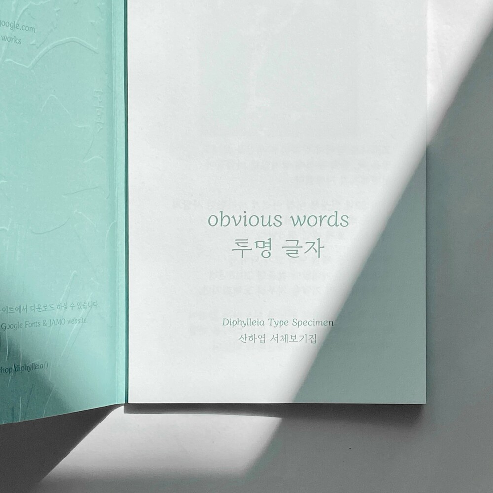 『투명 글자(obvious words)』는 샤이니 종현을 추억하기 위해 만들어진 서체 산하엽의 글꼴보기집입니다.